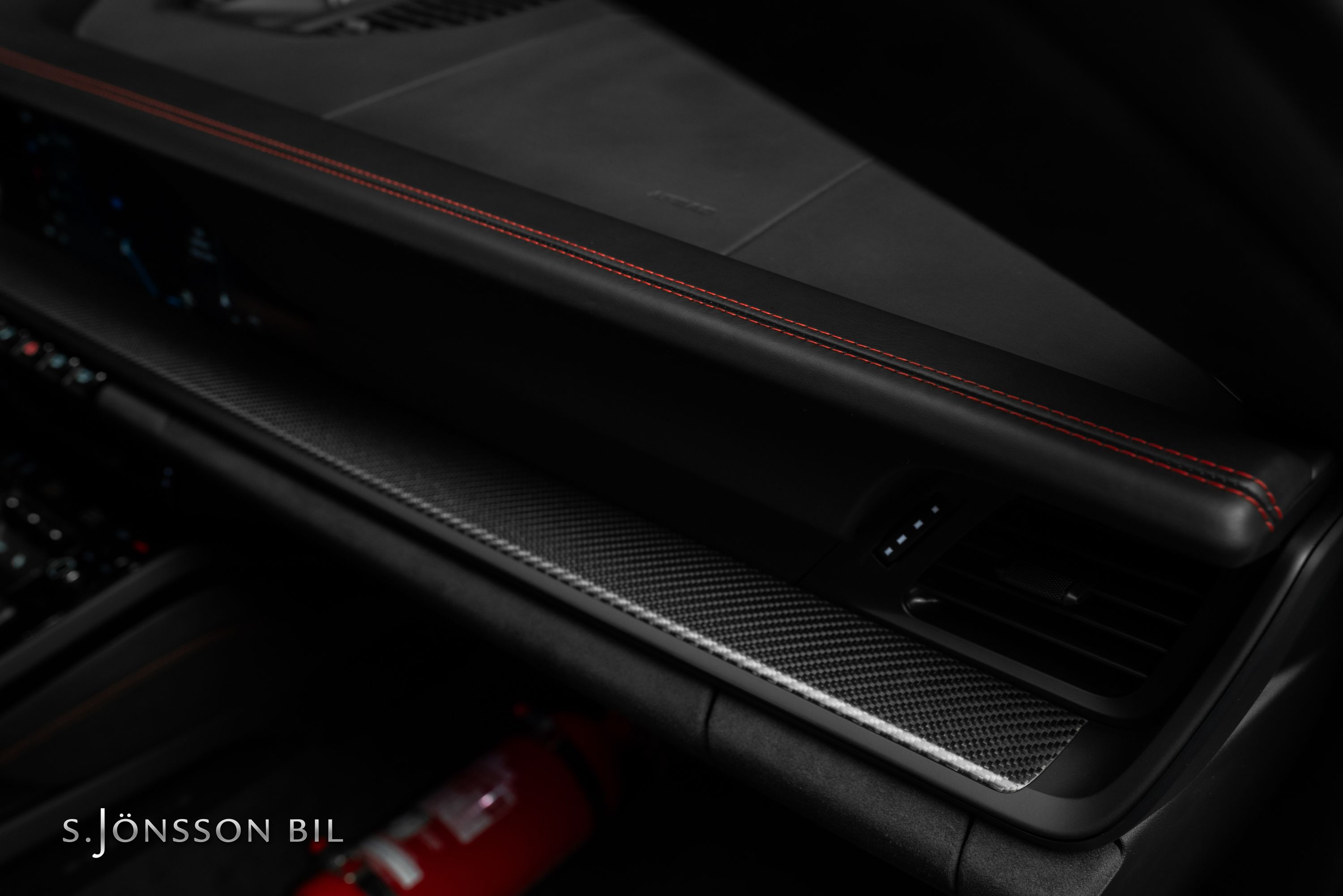 - Interiör med utökat svart läder och race-tex samt röda kontrastsömmar.