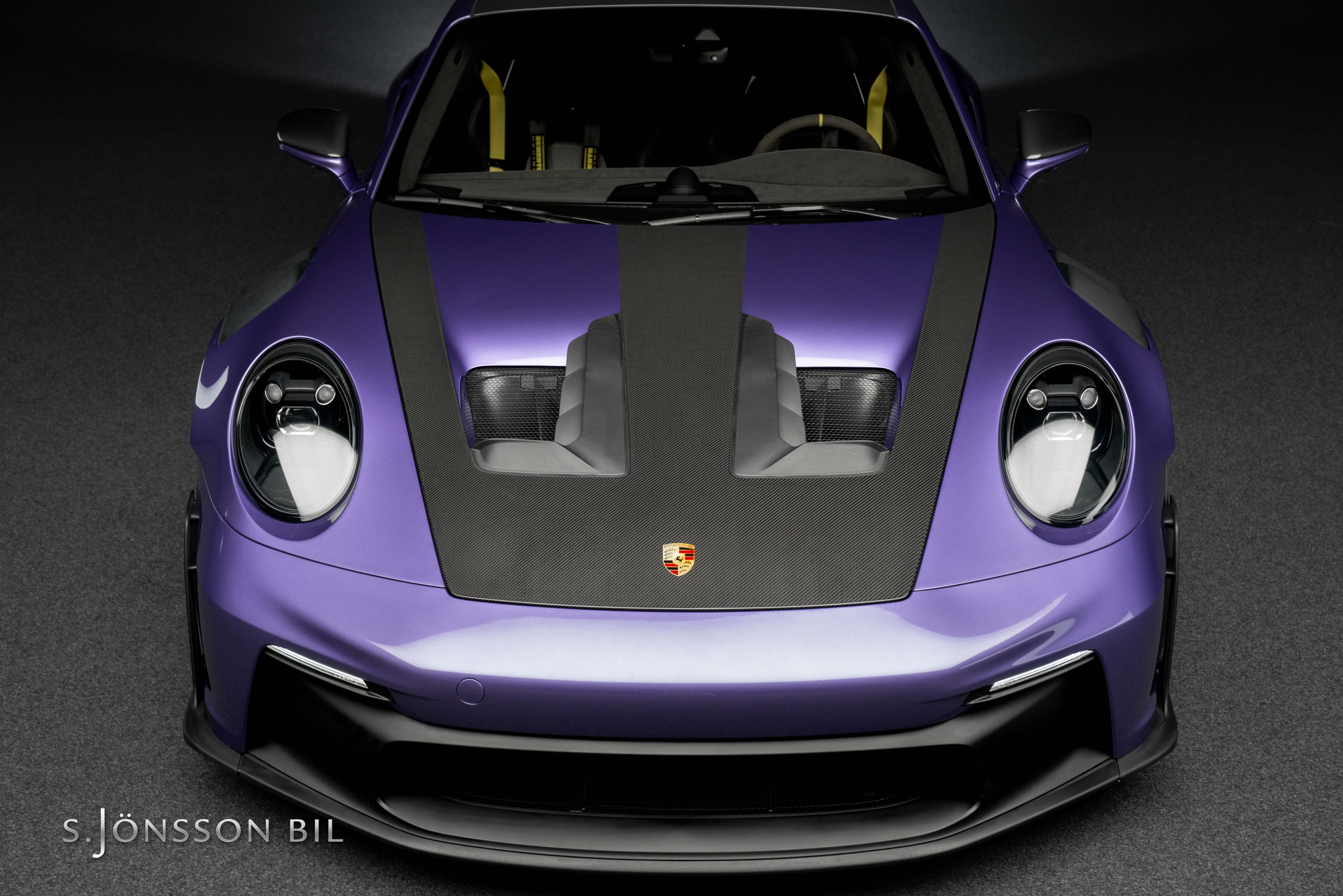 Porsche 992 GT3 RS lackerad i PTS färgen Viola Purple metallic.