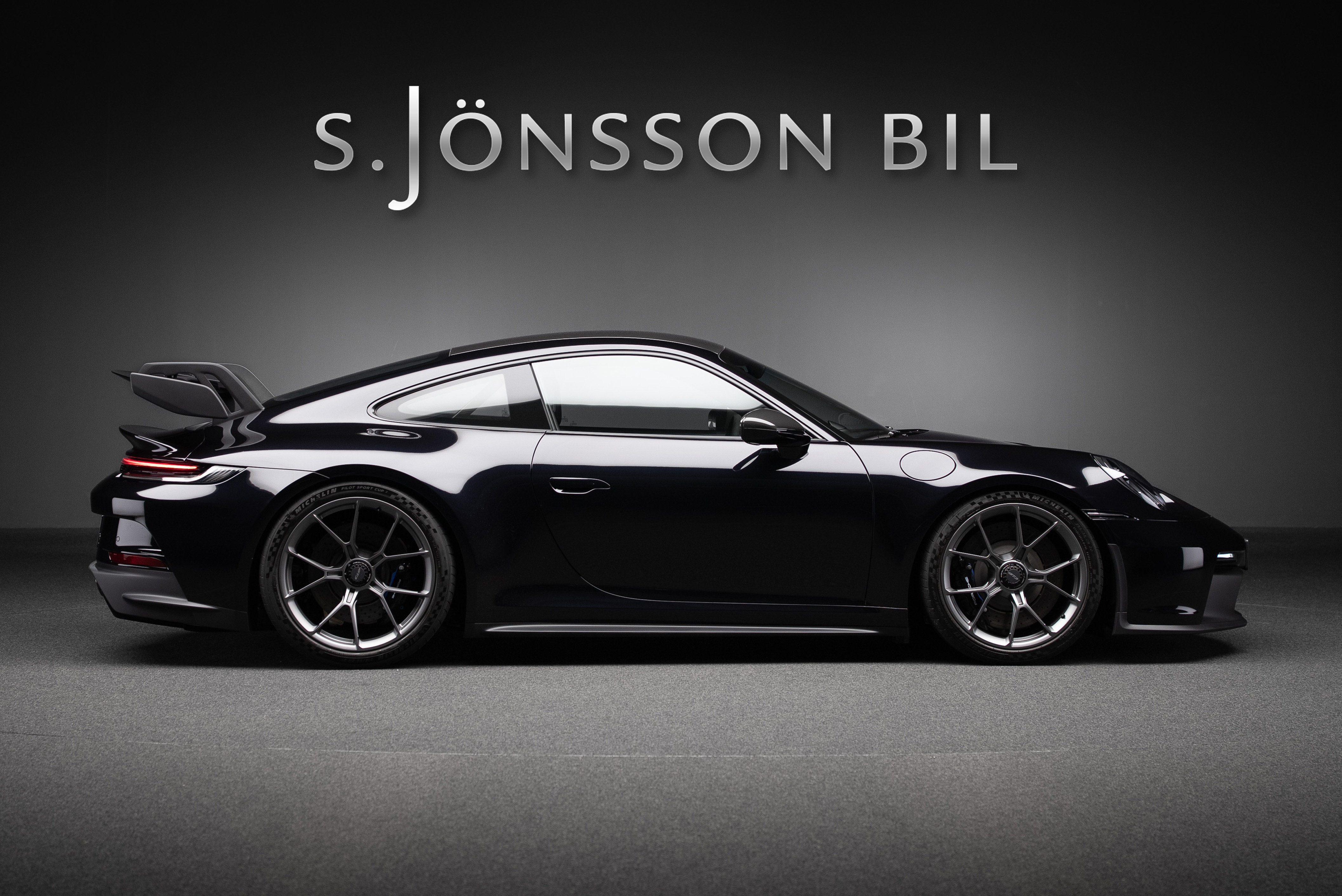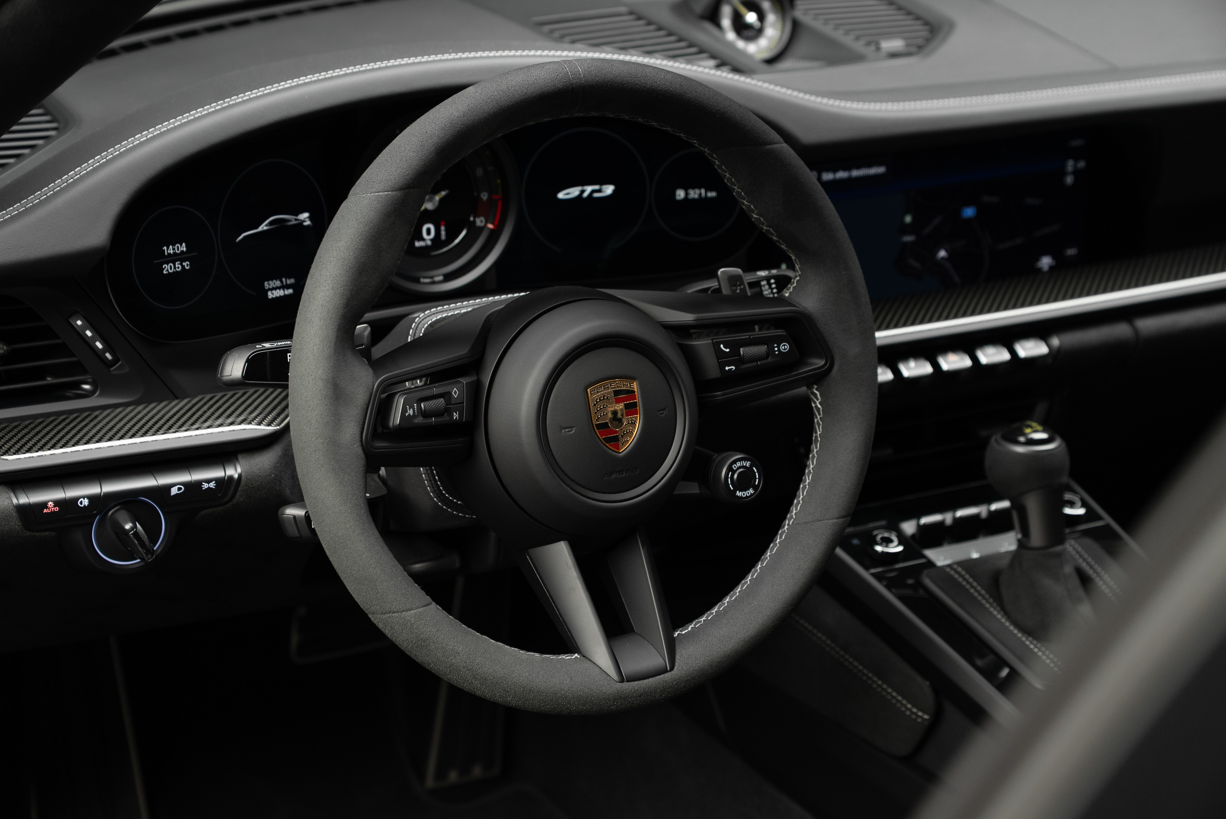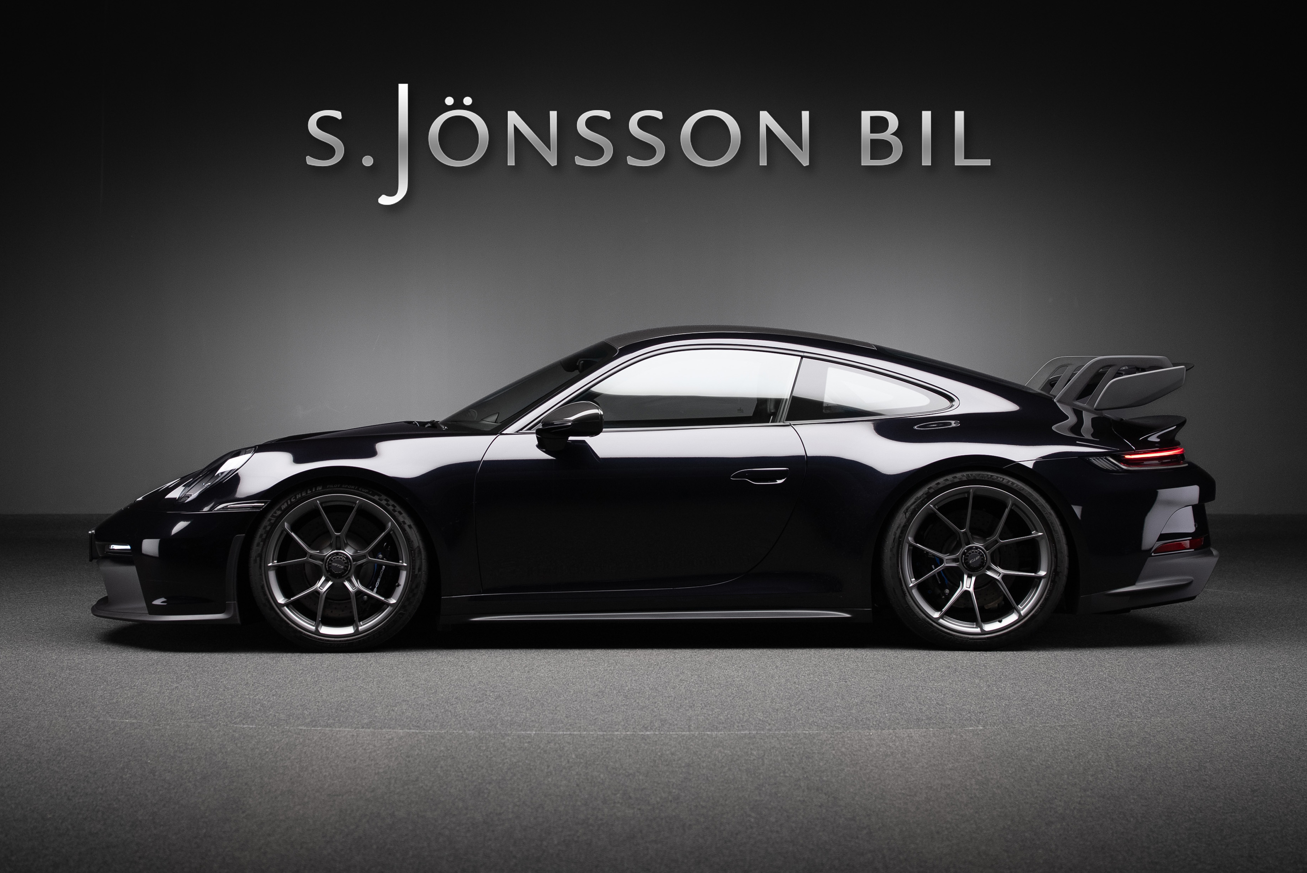Porsche 911 992 GT3 lackerad i Jet Black Metallic kombinerad med läderinteriör i svart med kontrastsömmar i GT-silver.
