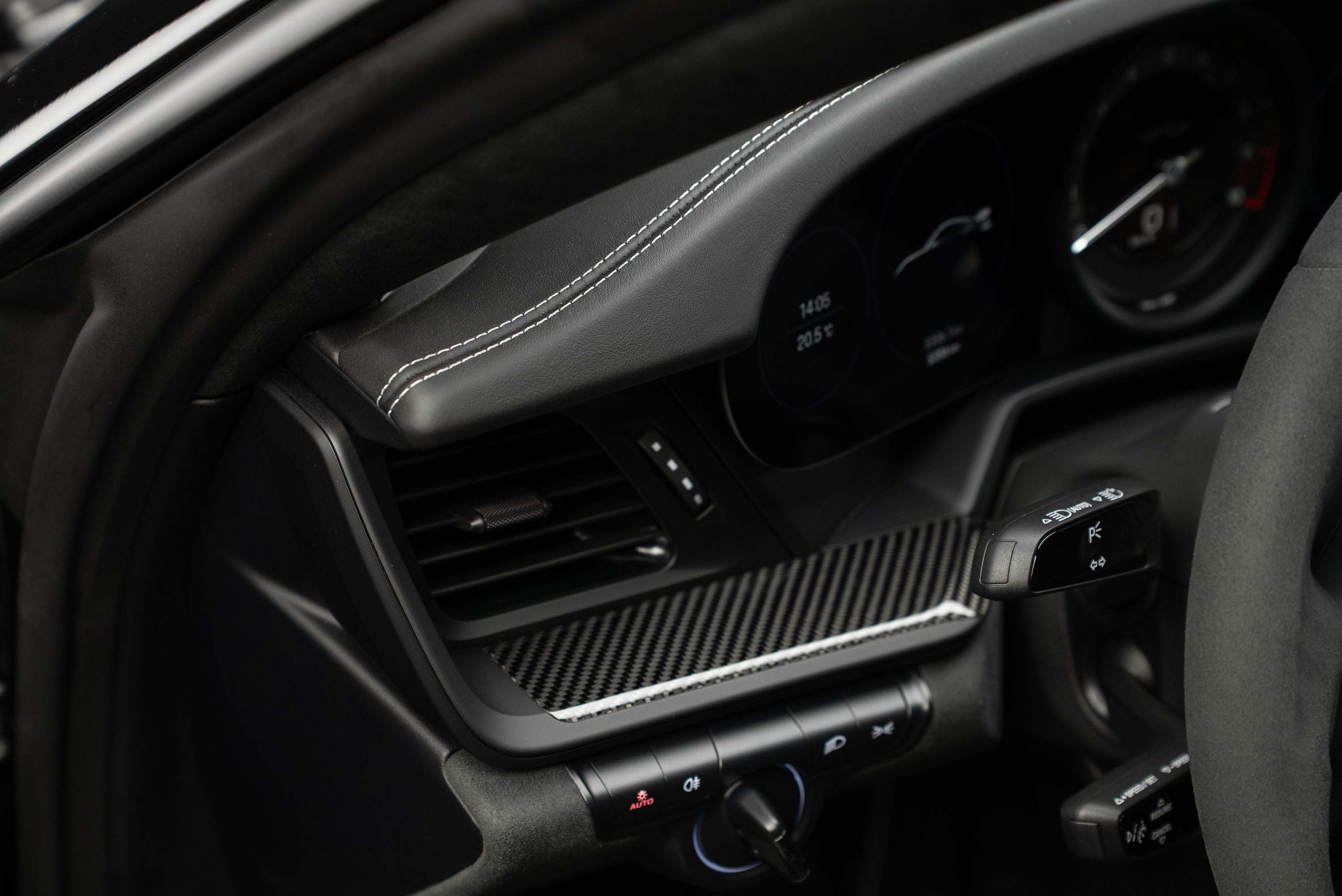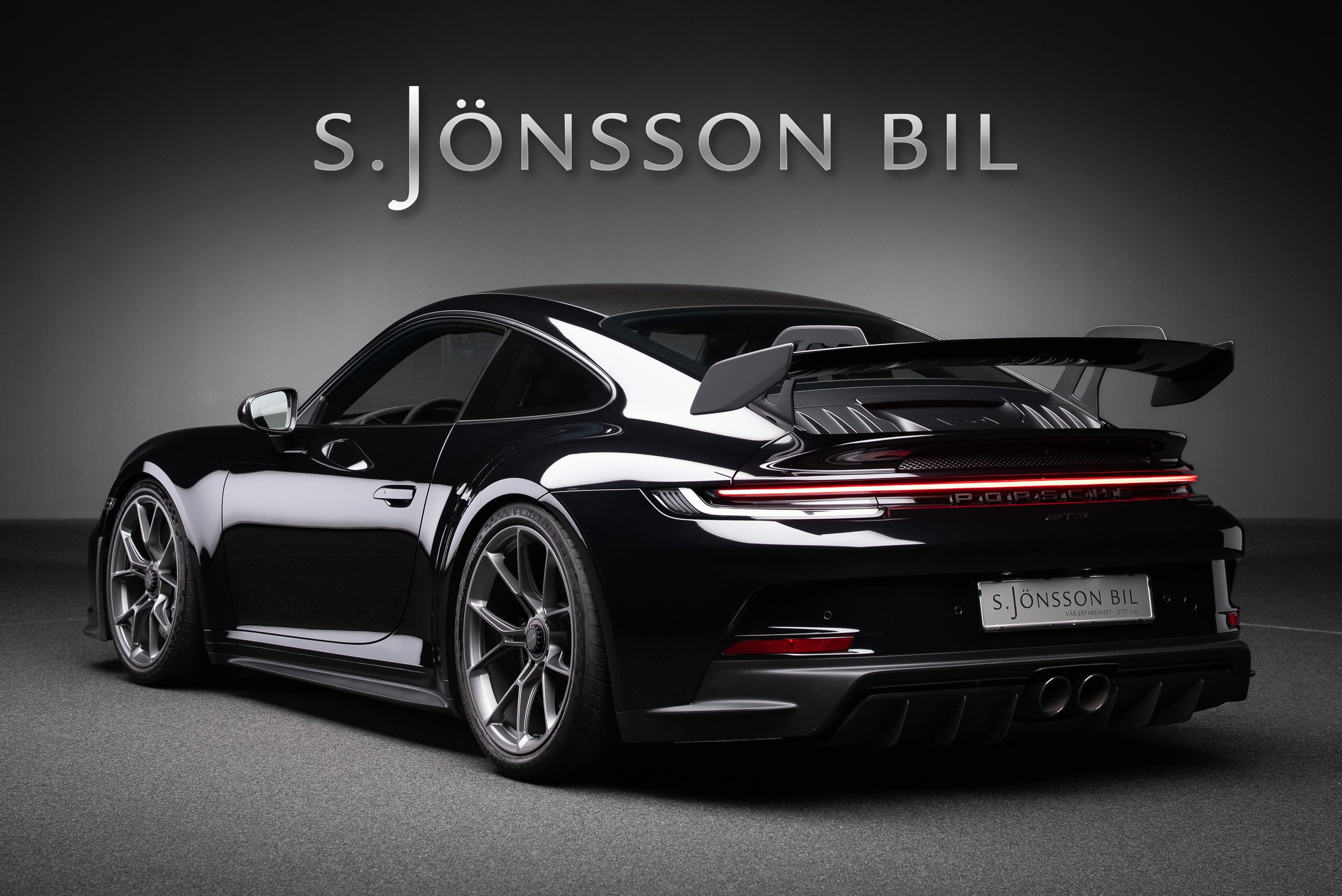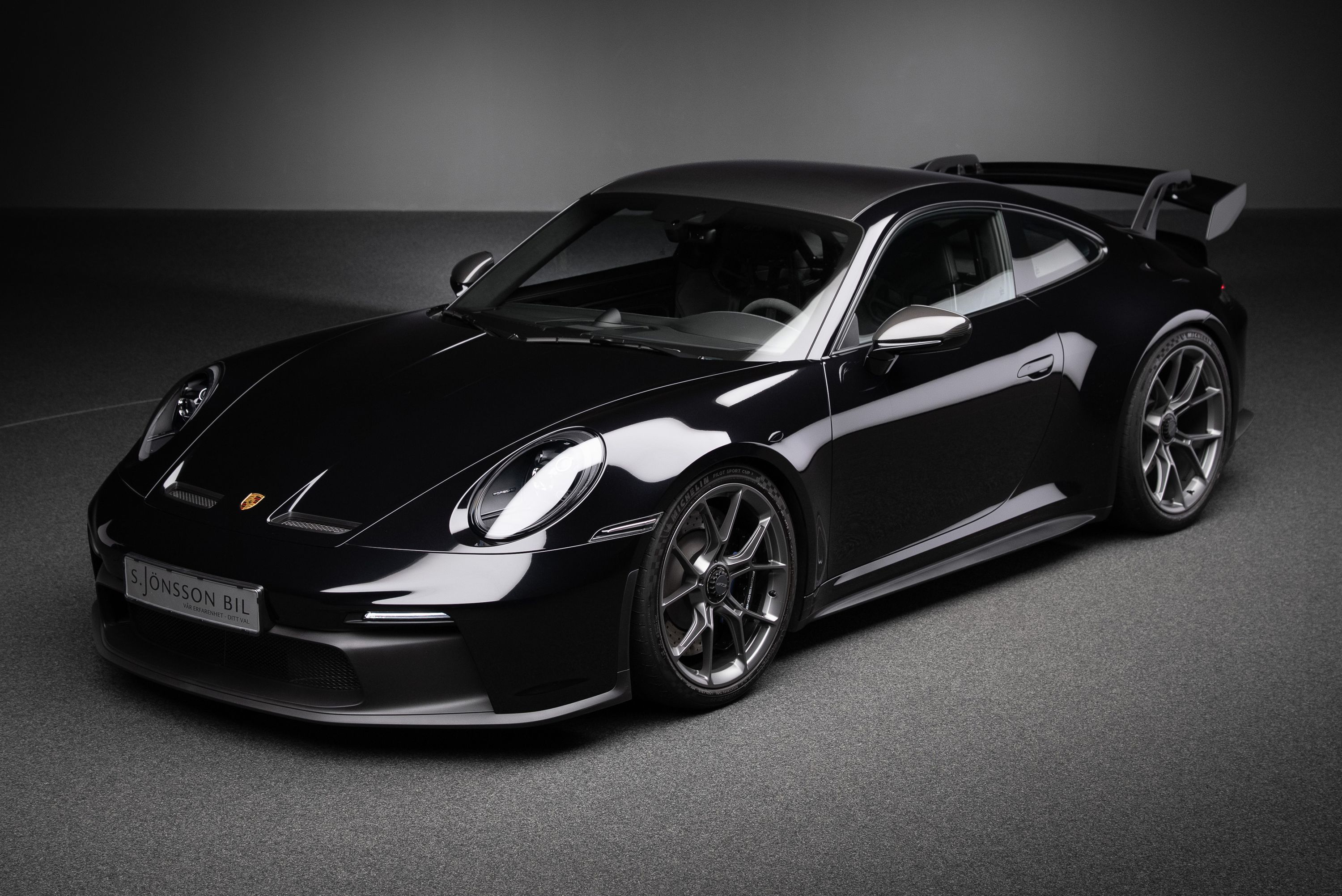 Porsche 992 GT3 lackerad i Jet Black metallic kombinerad med läderinteriör i svart med kontrastsömmar i GT-silver.