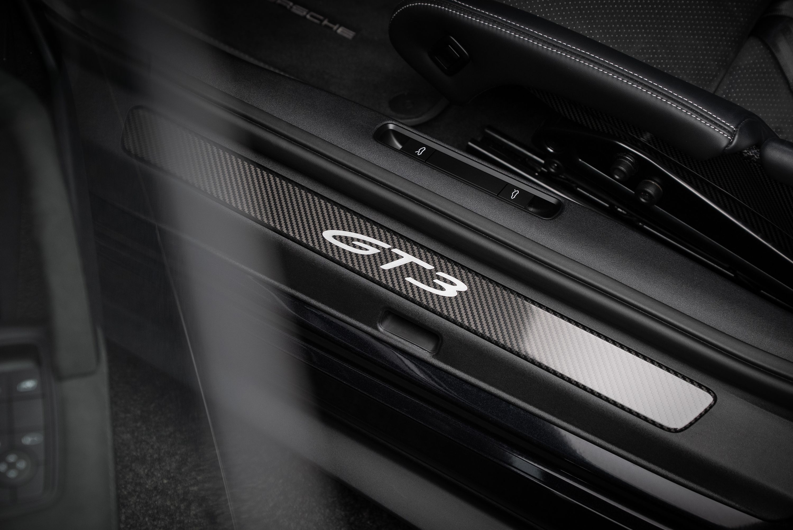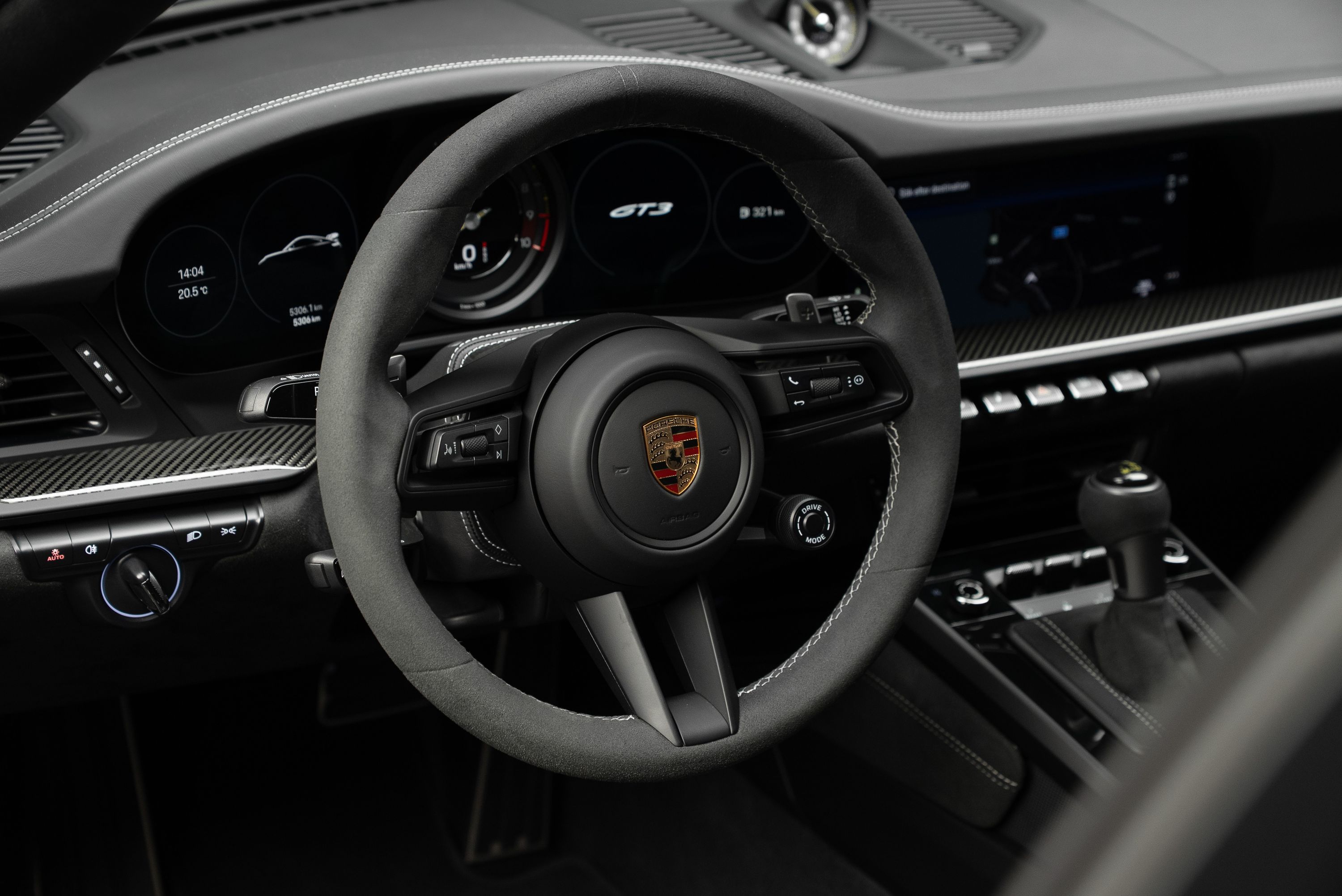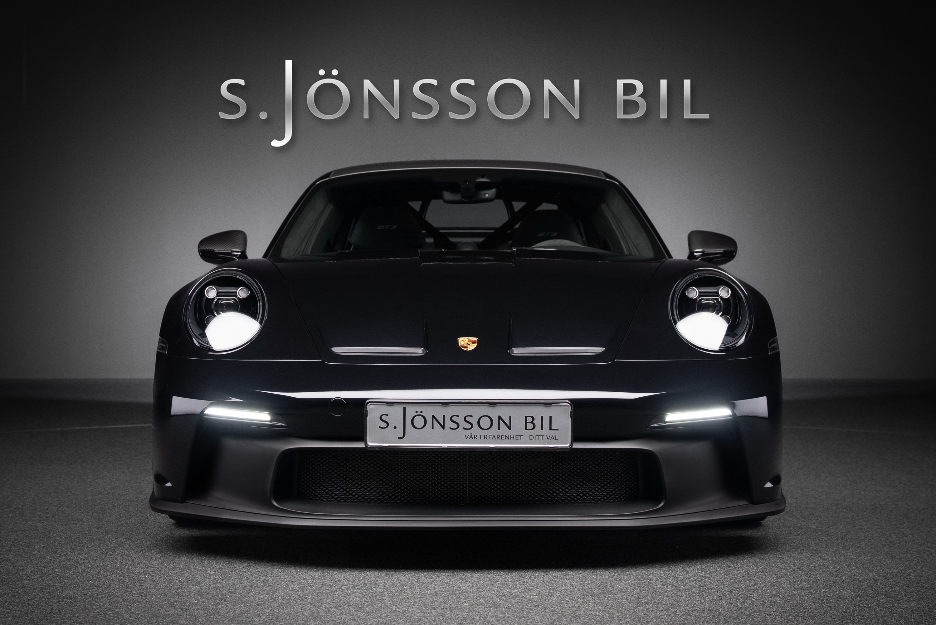 Porsche 992 GT3 lackerad i Jet Black metallic kombinerad med läderinteriör i svart med kontrastsömmar i GT-silver.