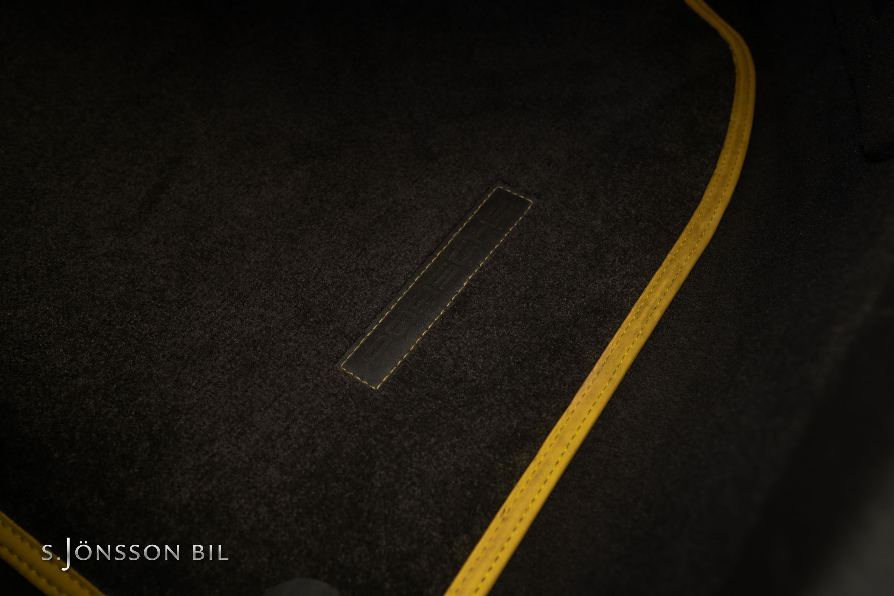 Stilrent färgsatt med Basaltsvart lack och gula detaljer som säkerhetsbälte, mätartavlor, mattkanter och bromsok.
