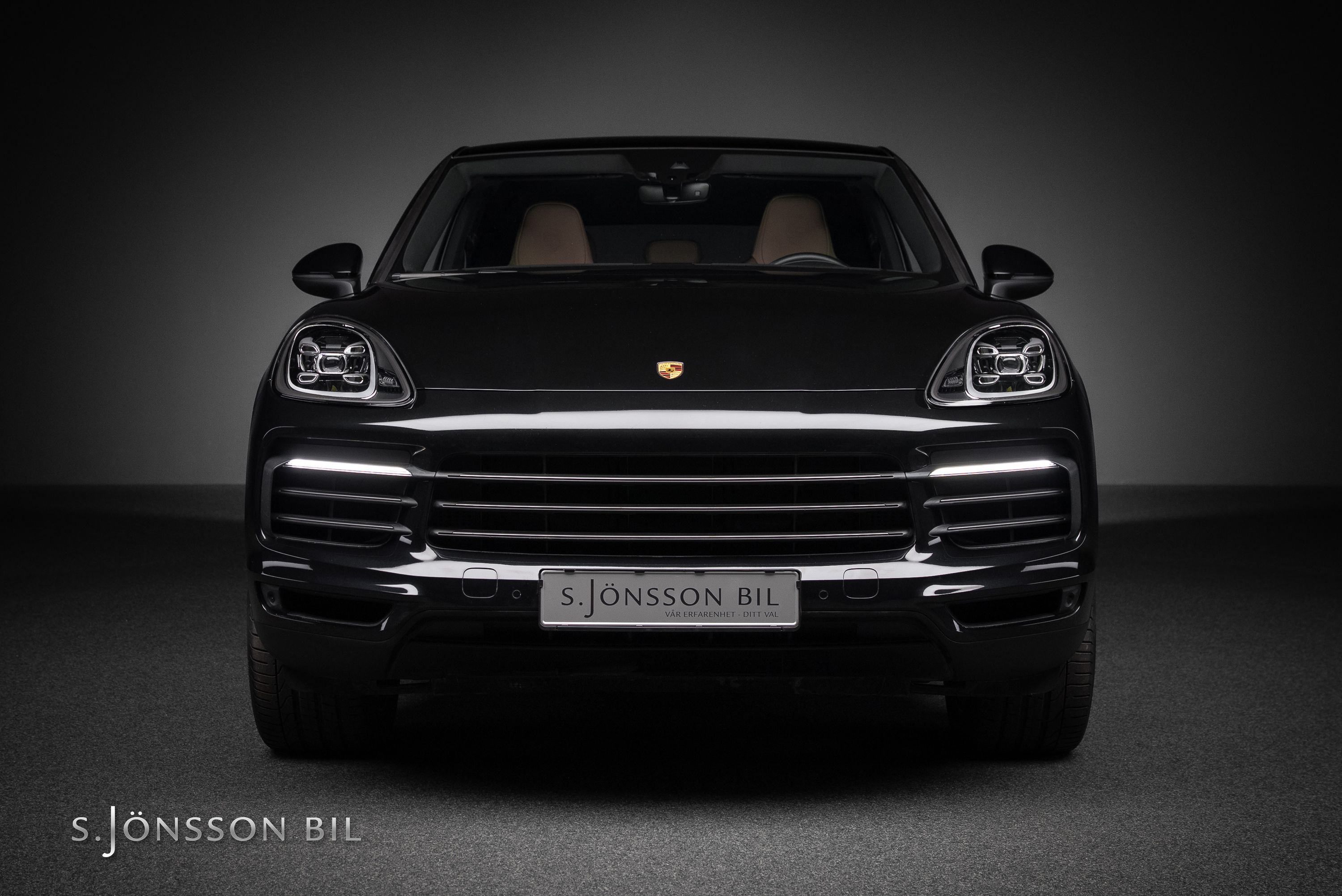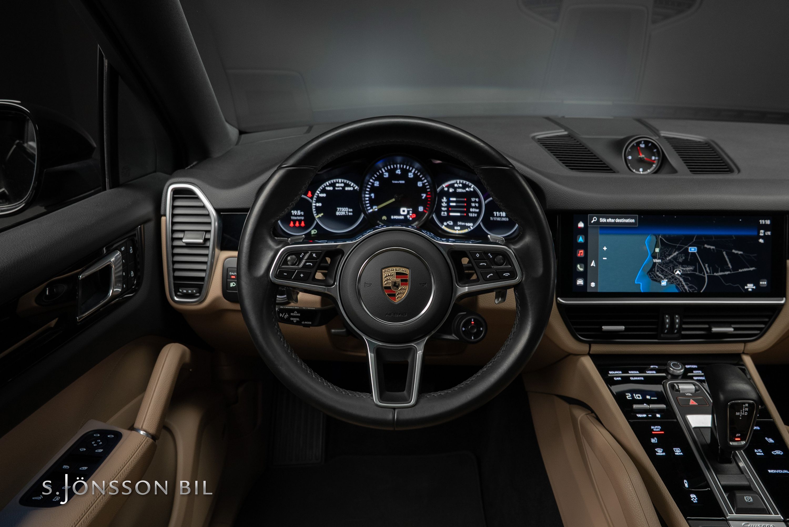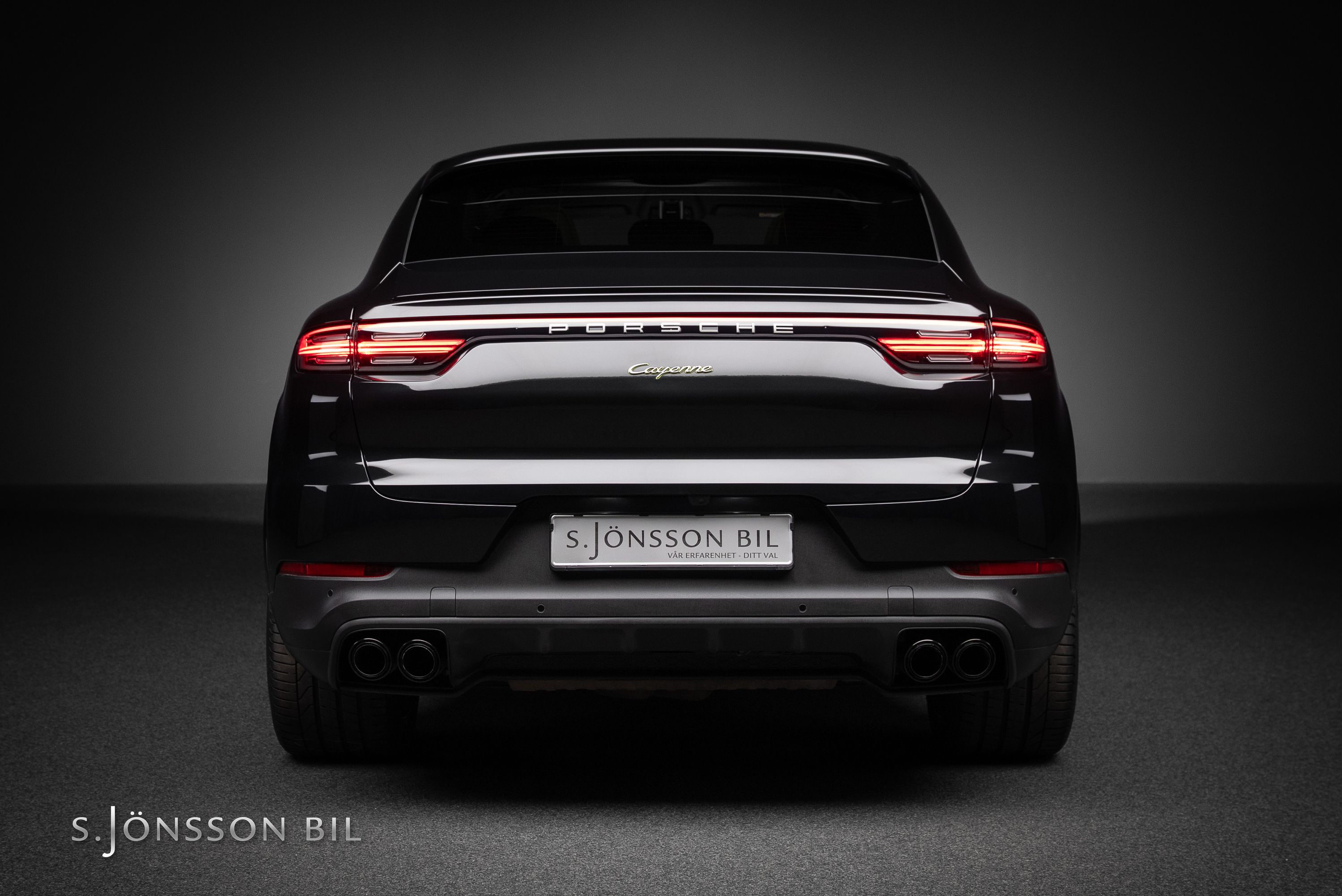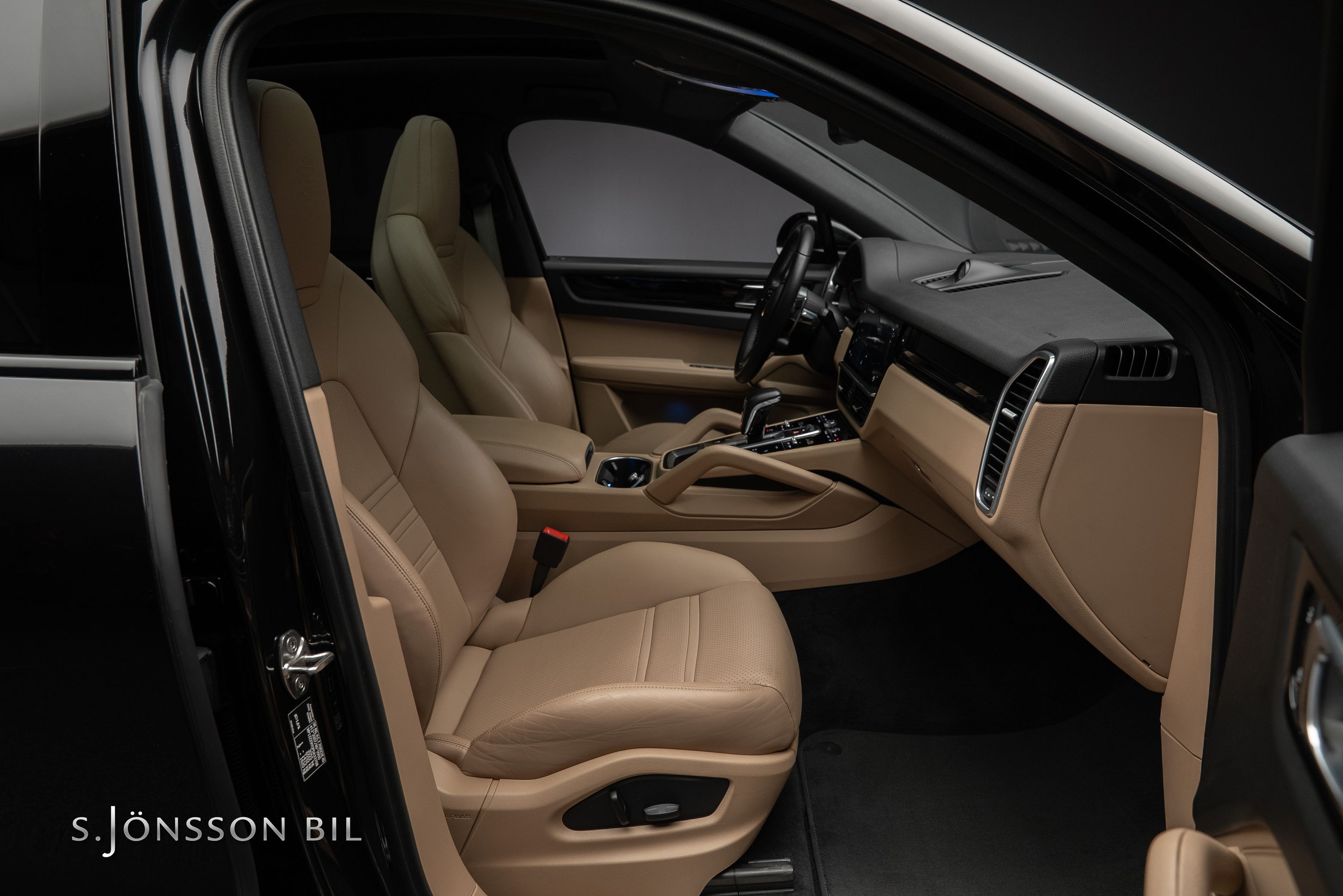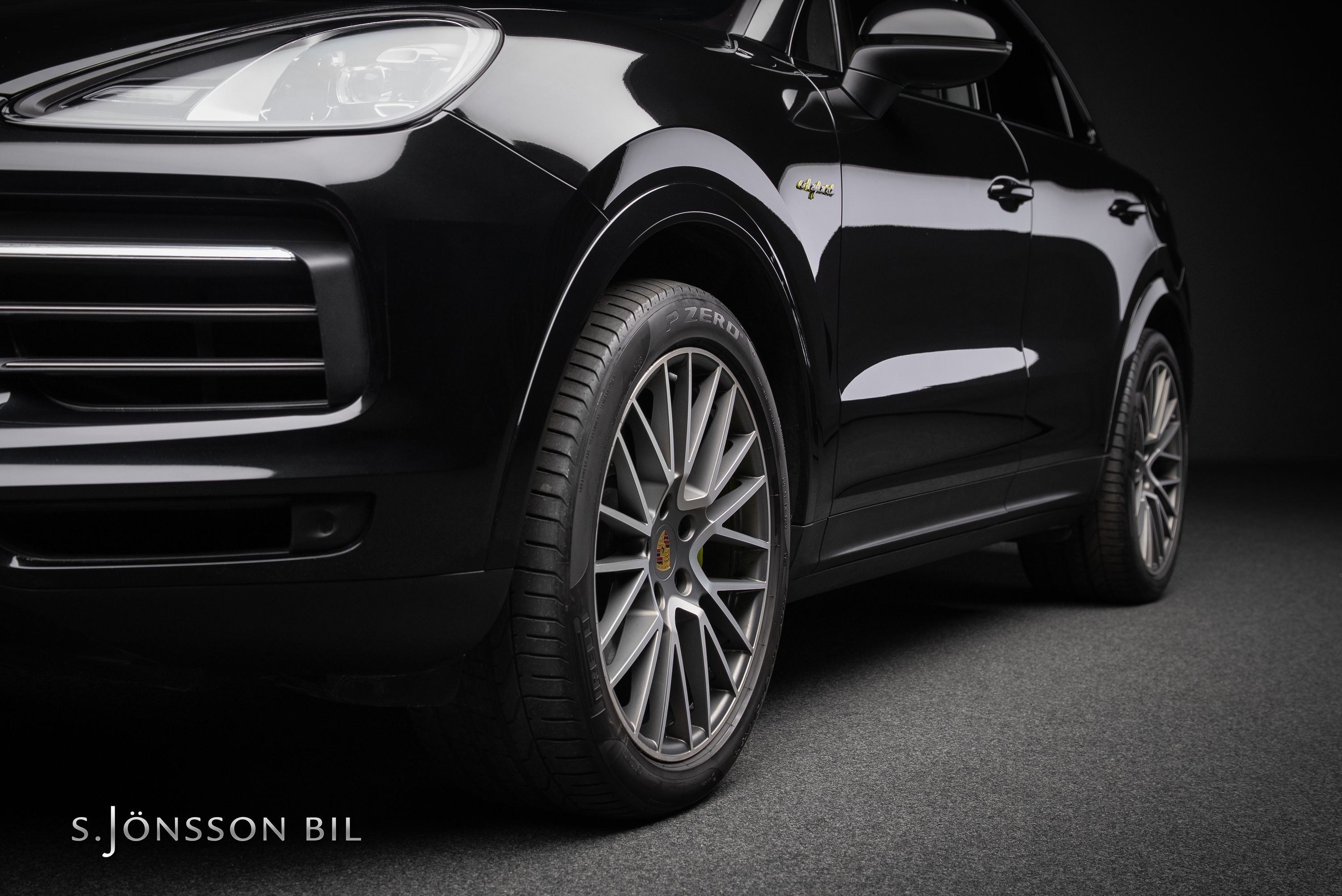 Porsche Cayenne Coupé E-Hybrid Platinum Edition lackerad i Chromite Black Metallic kombinerat med tvåtons läderinteriör i beige/svart. Platinum Edition var en specialutgåva som innebar en rad exklusiva designdetaljer så som ”PORSCHE” logotypen som integrerats i den bakre ljusrampen, modellbeteckningen baktill, 21-tumsfälgarna i RS Spyder-design samt detaljer i Satin Platinum. På en laddning så kommer man upp till 47 km enligt WLTP med batteriet på 17,9 kWh.