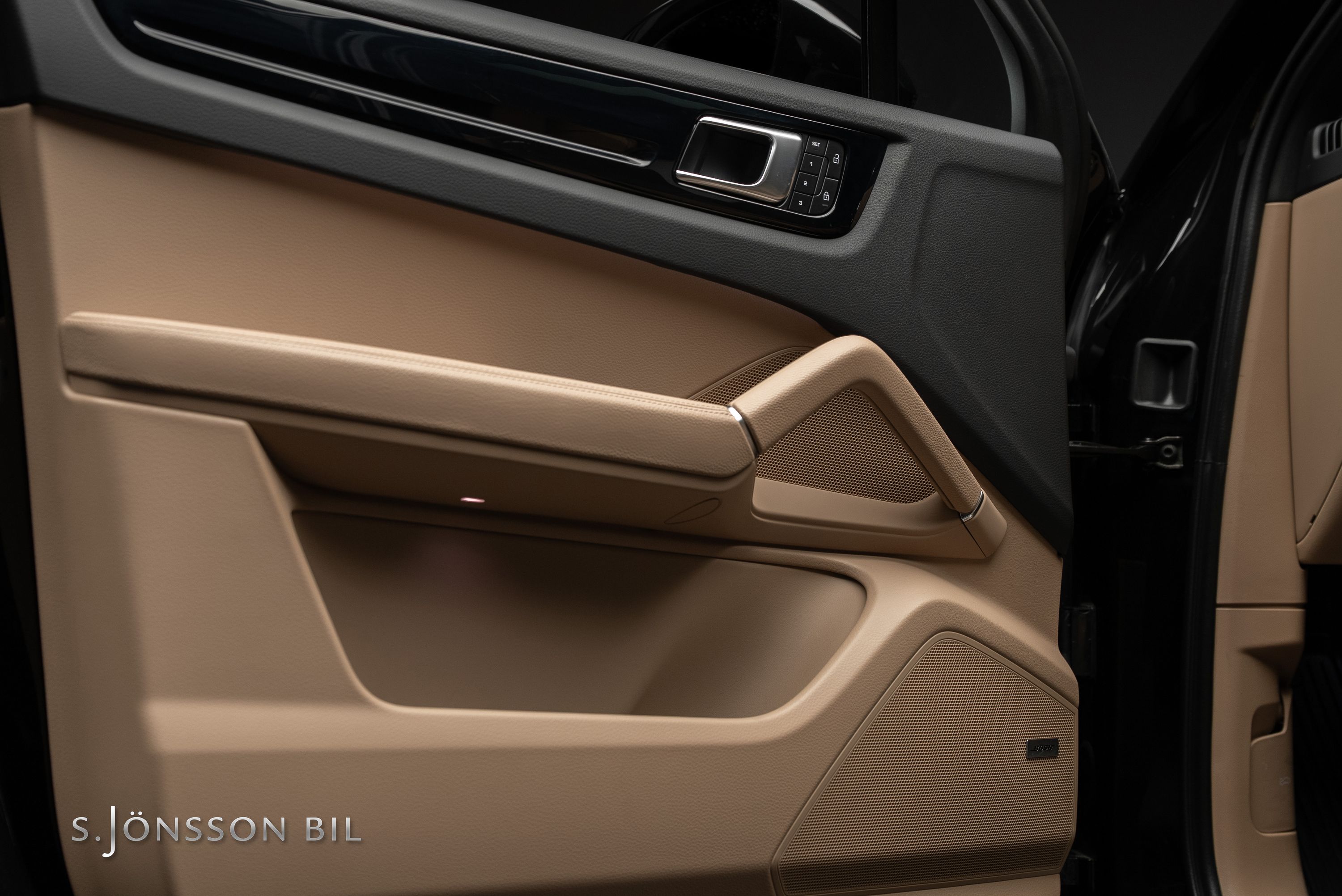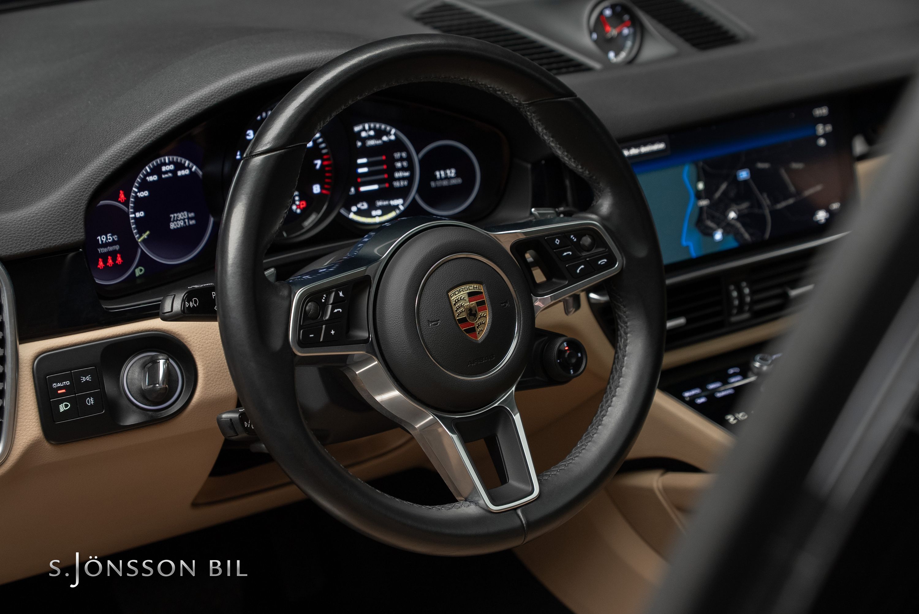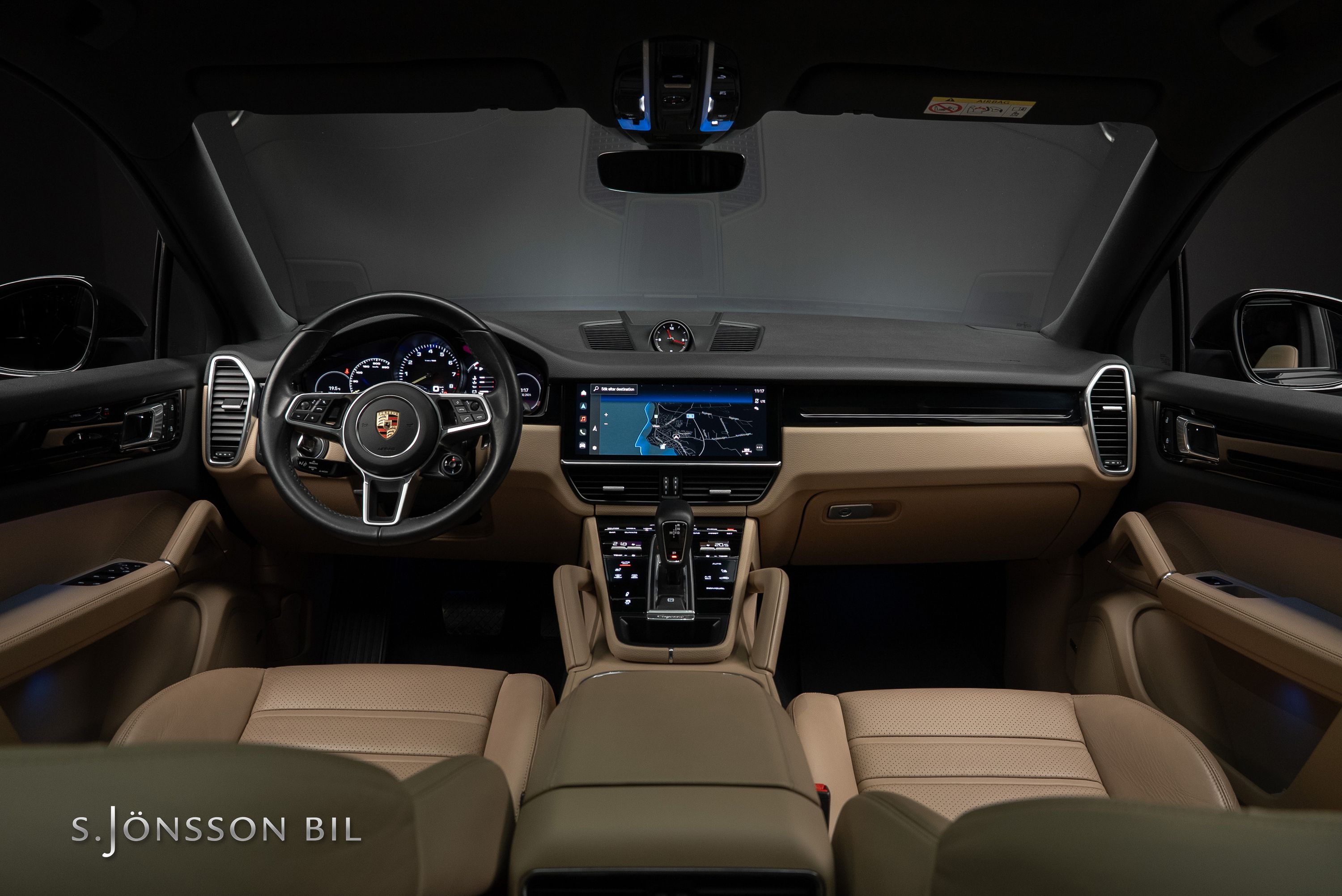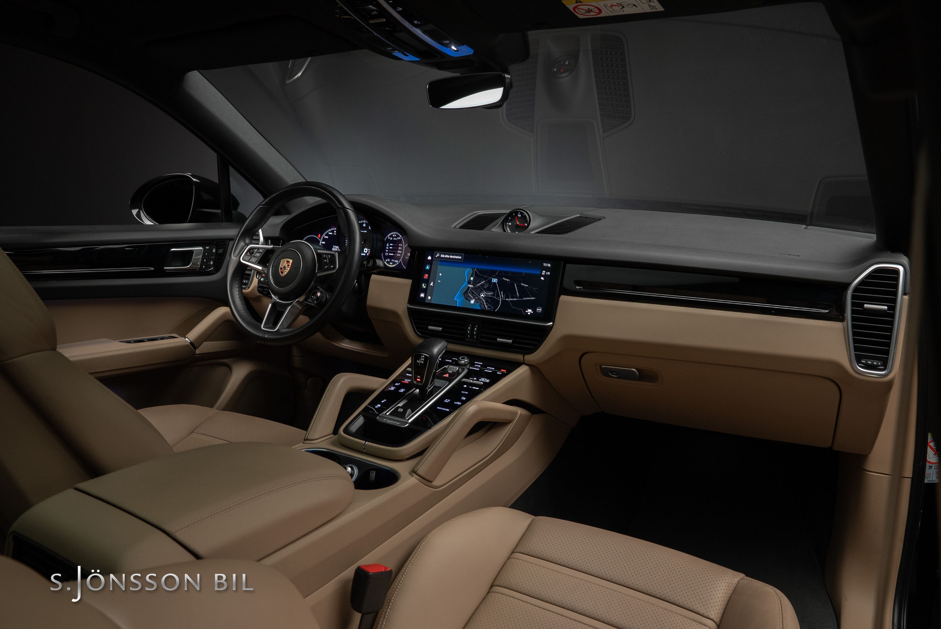 Porsche Cayenne Coupé E-Hybrid Platinum Edition lackerad i Chromite Black Metallic kombinerat med tvåtons läderinteriör i beige/svart. Platinum Edition var en specialutgåva som innebar en rad exklusiva designdetaljer så som ”PORSCHE” logotypen som integrerats i den bakre ljusrampen, modellbeteckningen baktill, 21-tumsfälgarna i RS Spyder-design samt detaljer i Satin Platinum. På en laddning så kommer man upp till 47 km enligt WLTP med batteriet på 17,9 kWh.