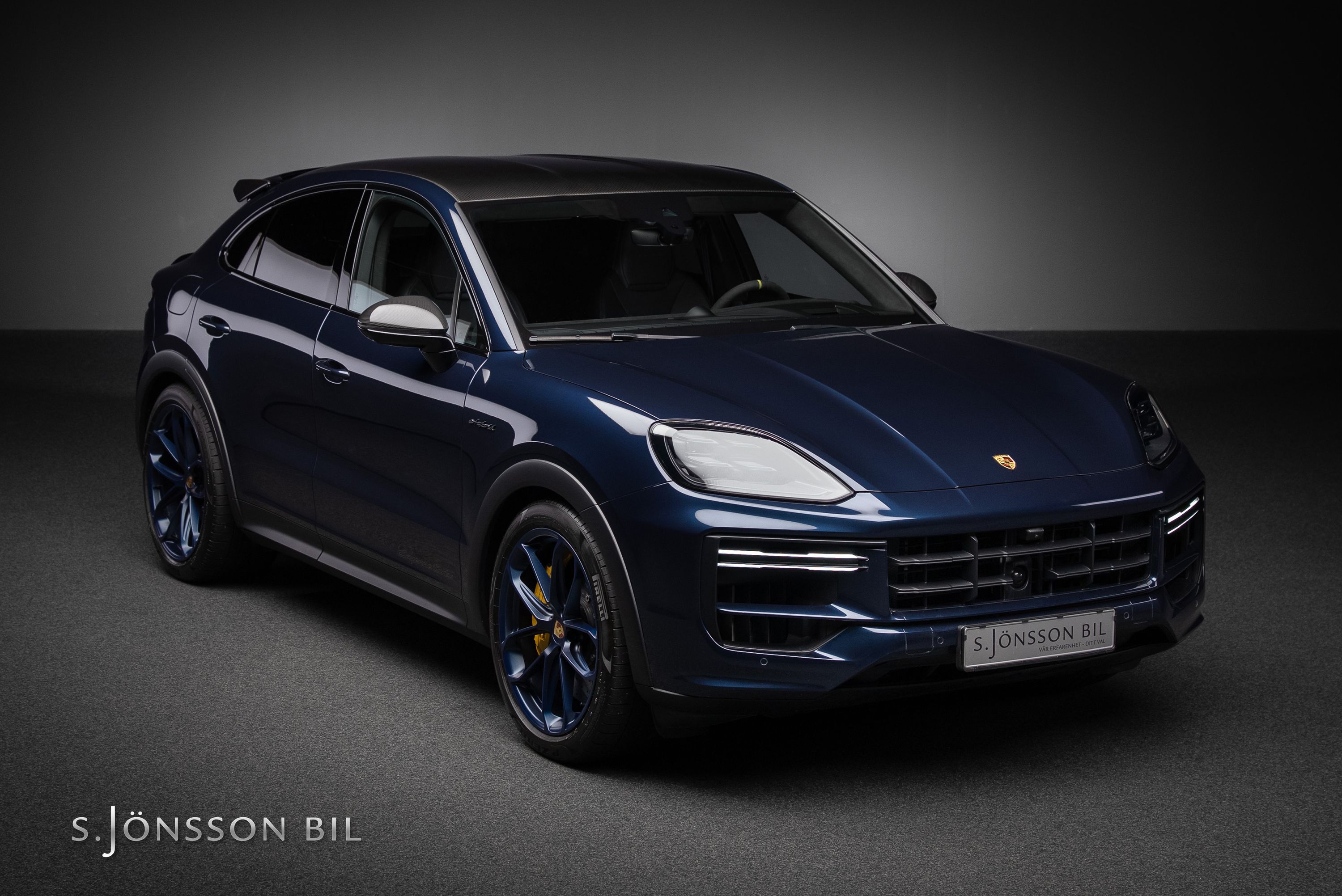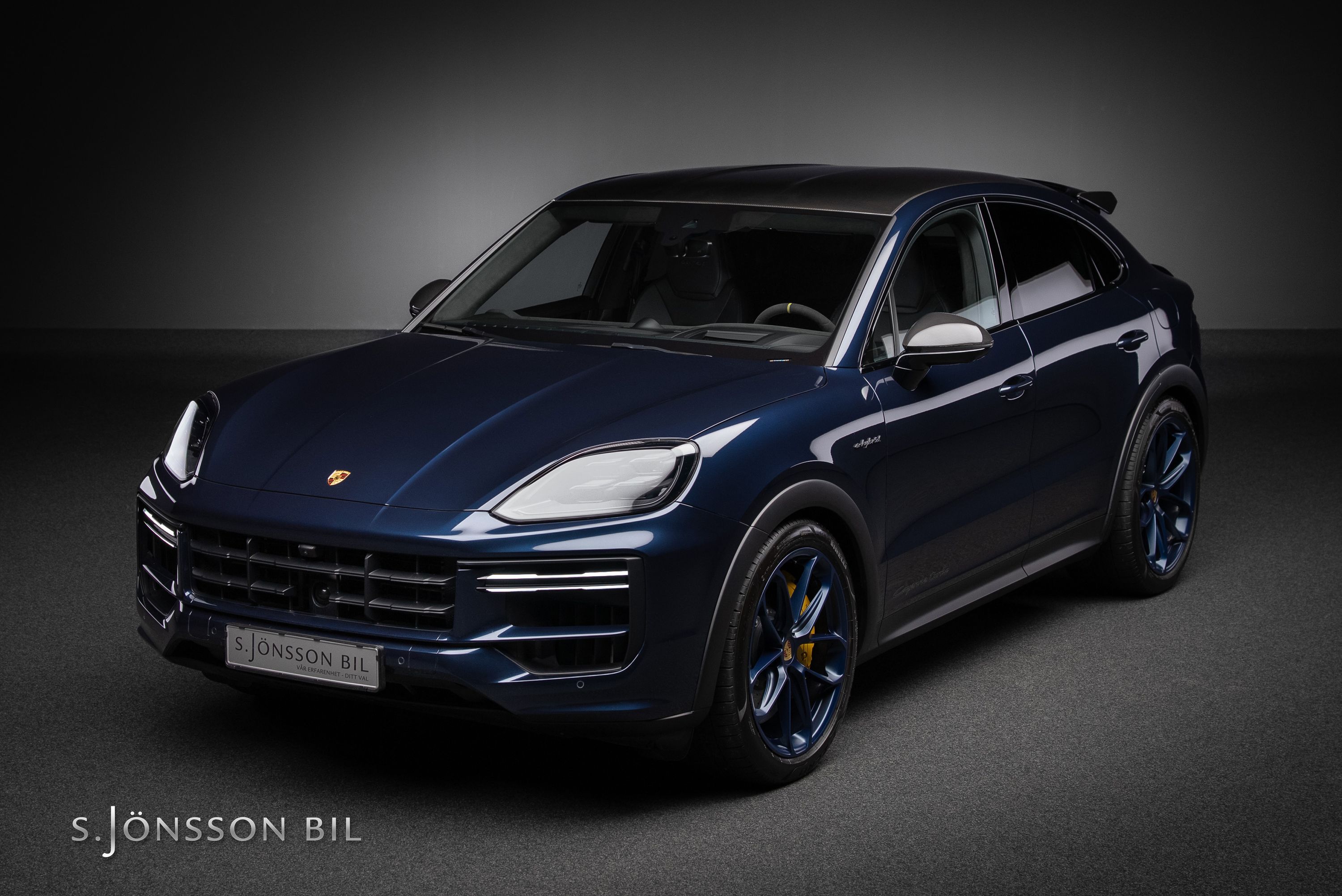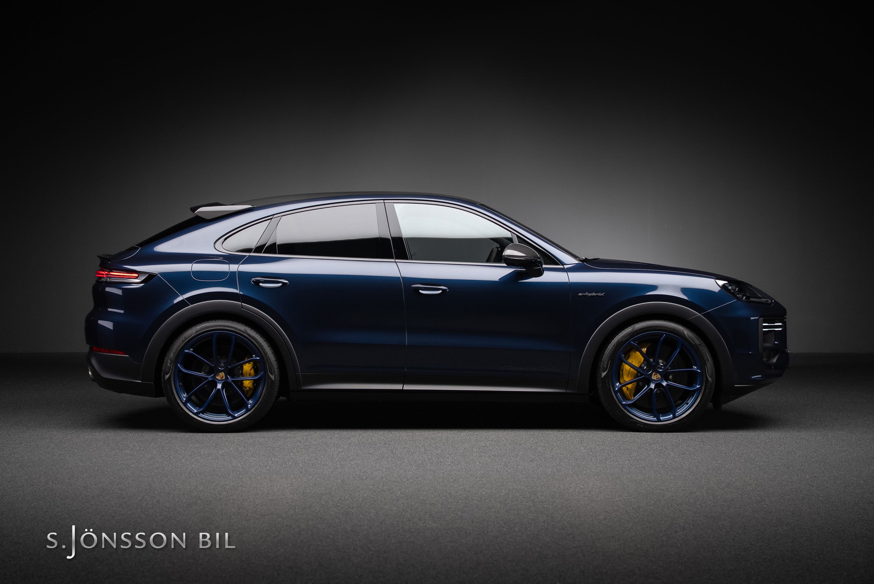 Porsche Cayenne Turbo E-Hybrid Coupé med GT Package. Extrautrustad för 216.500kr.