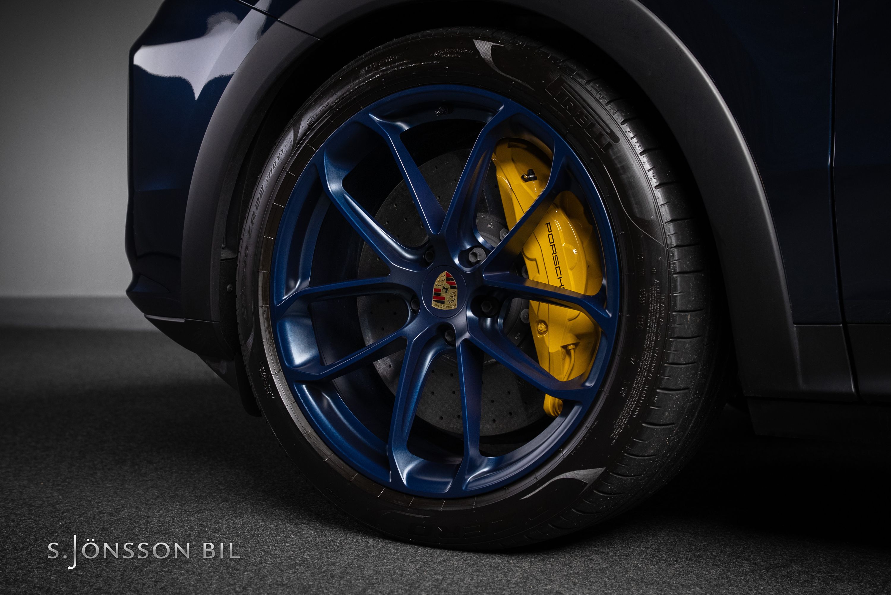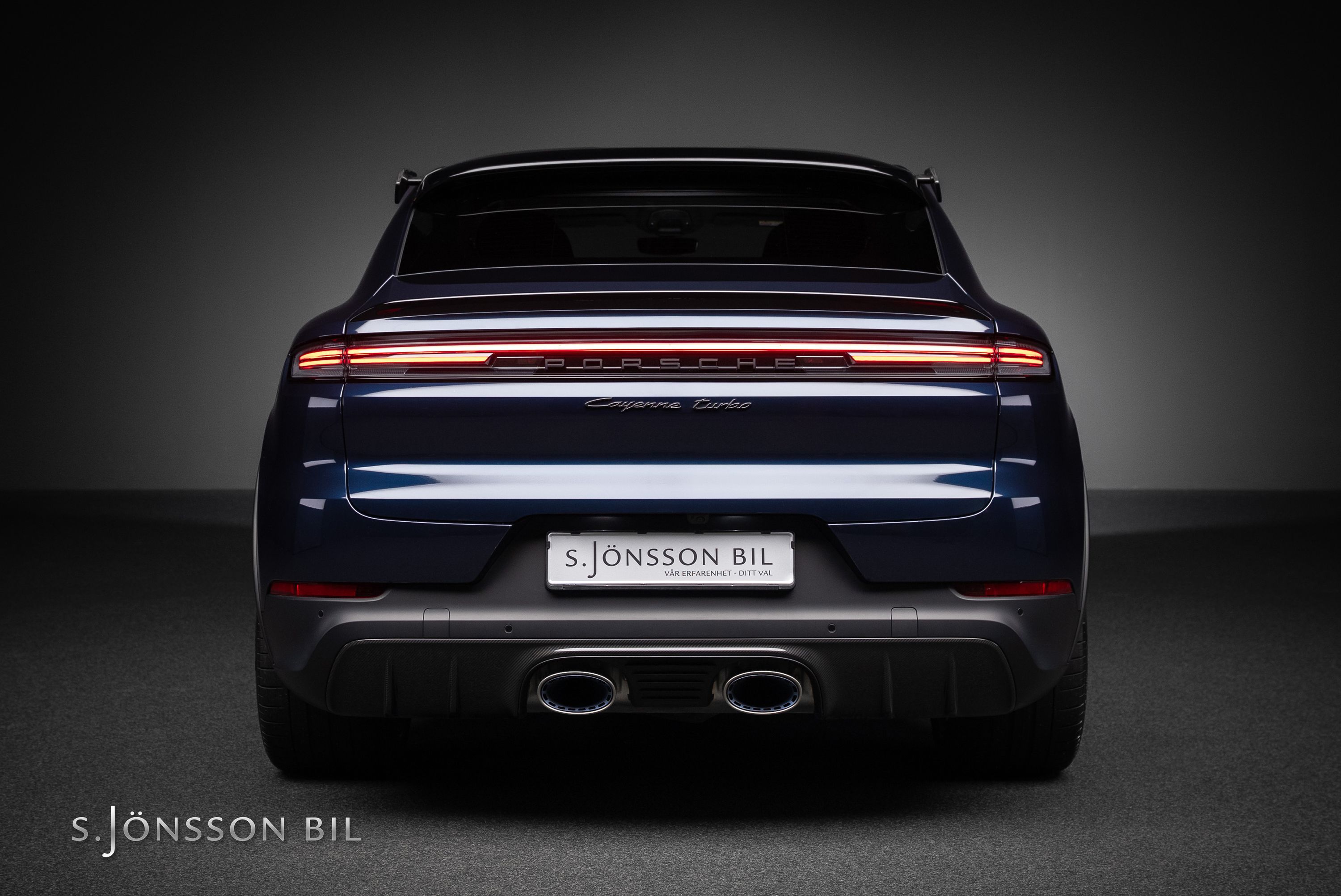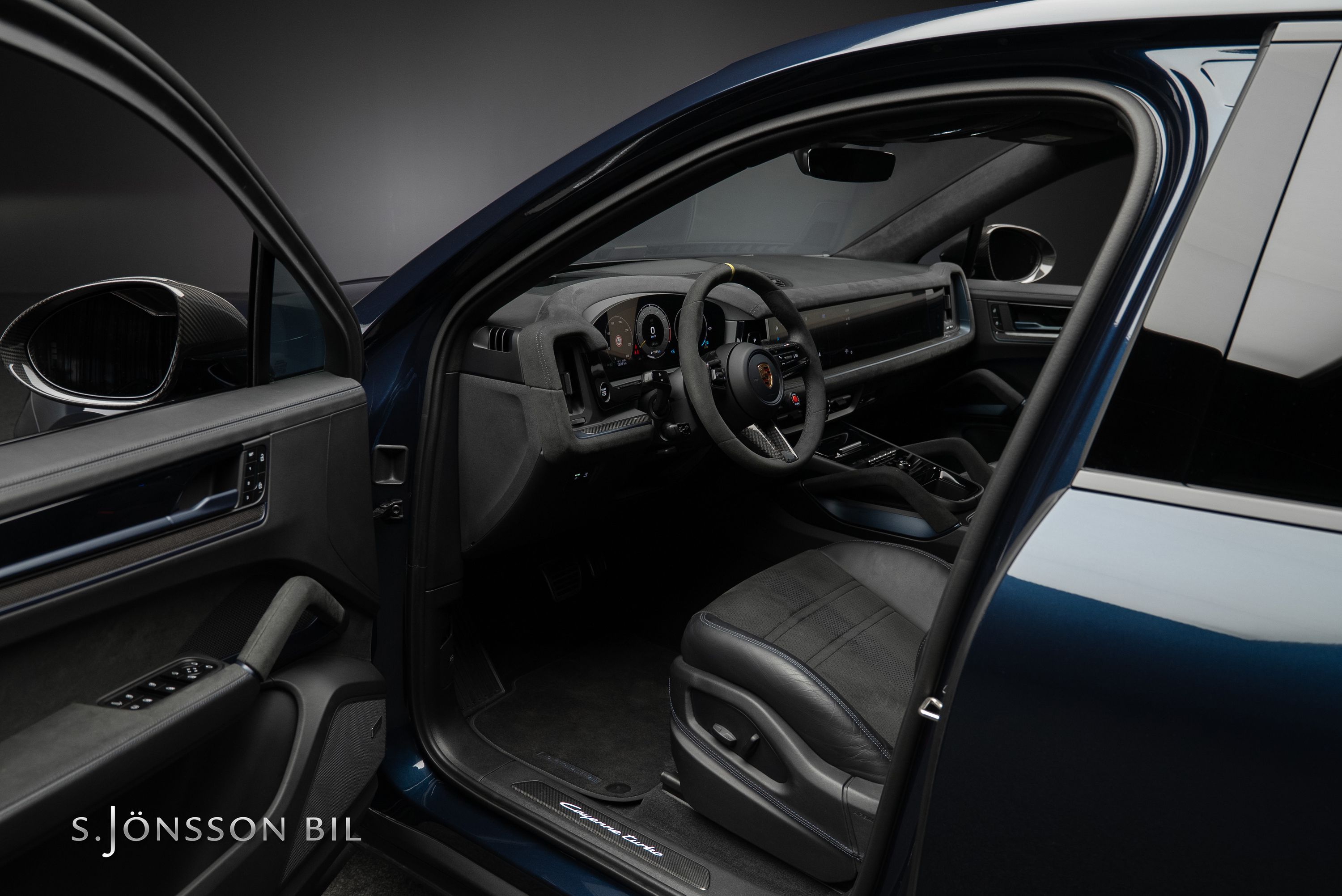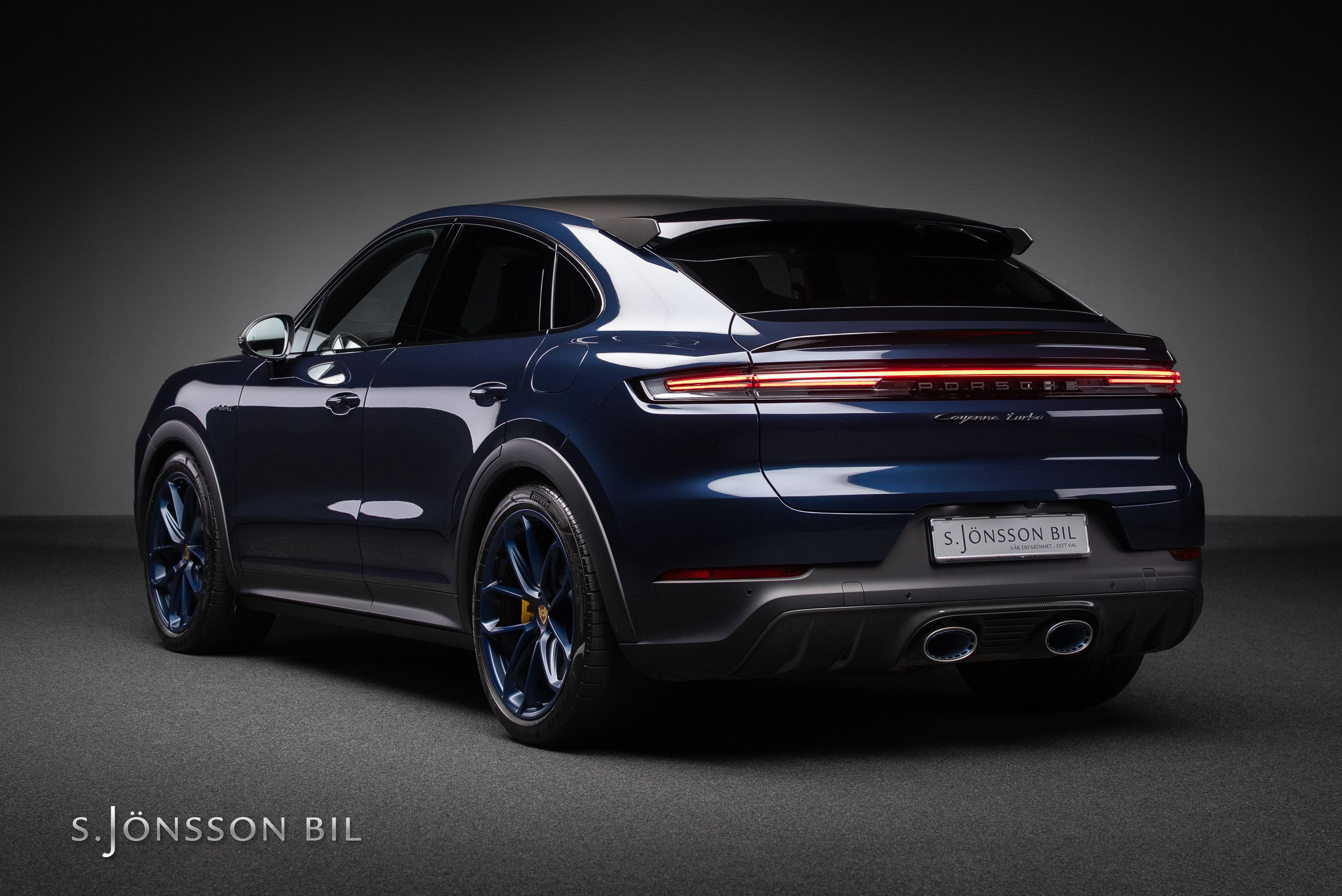 Porsche Cayenne Turbo E-Hybrid Coupé med GT Package. Extrautrustad för 216.500kr.