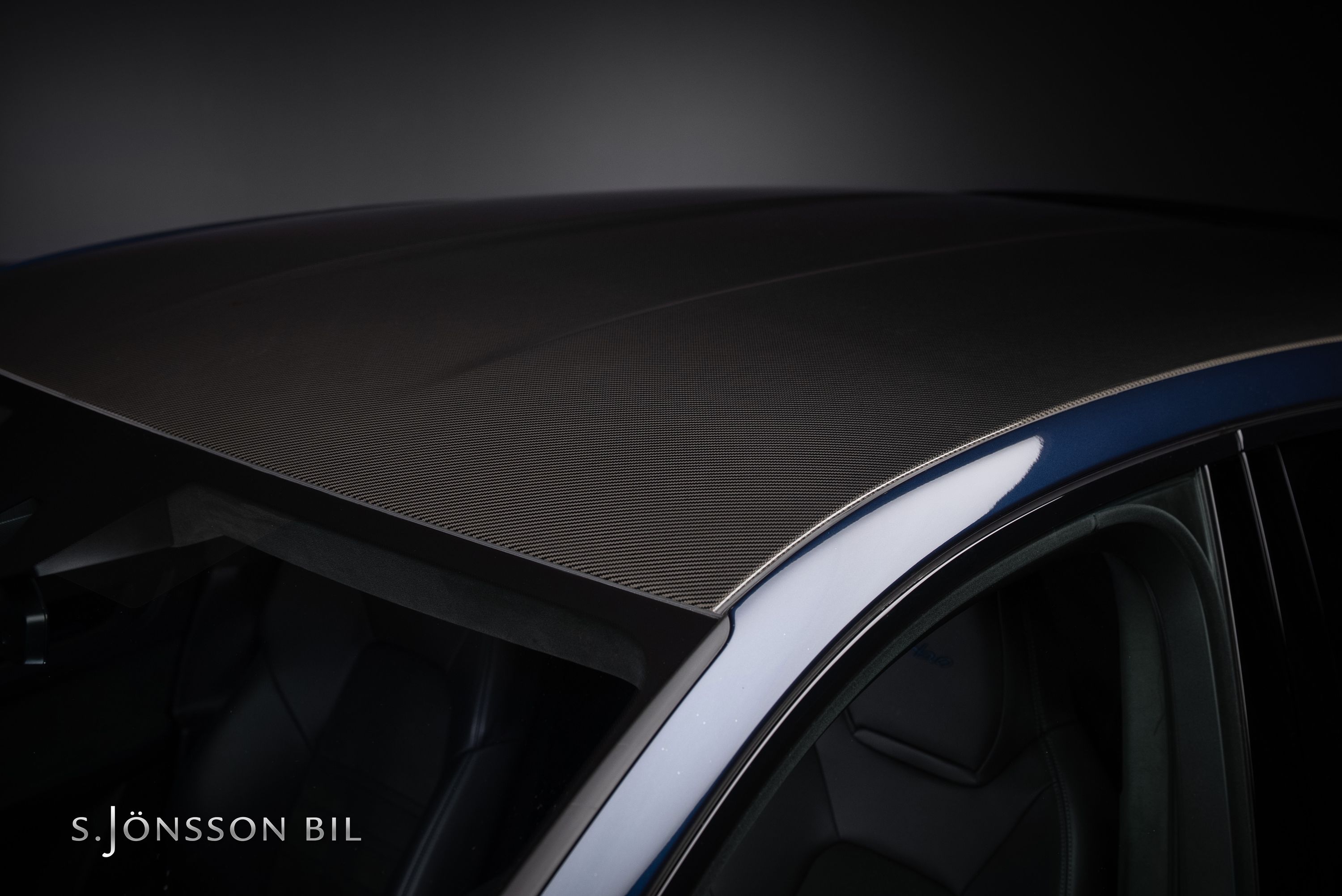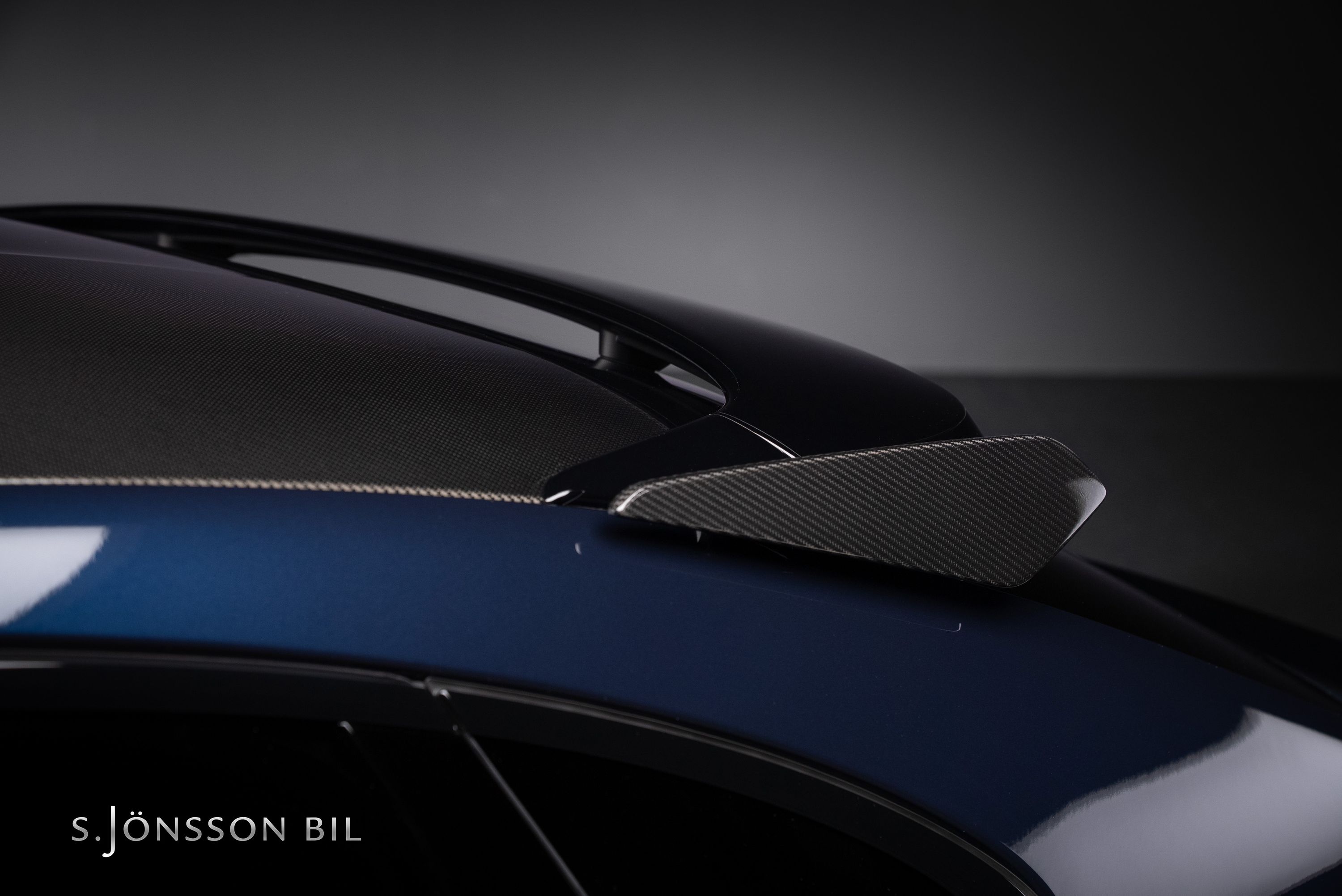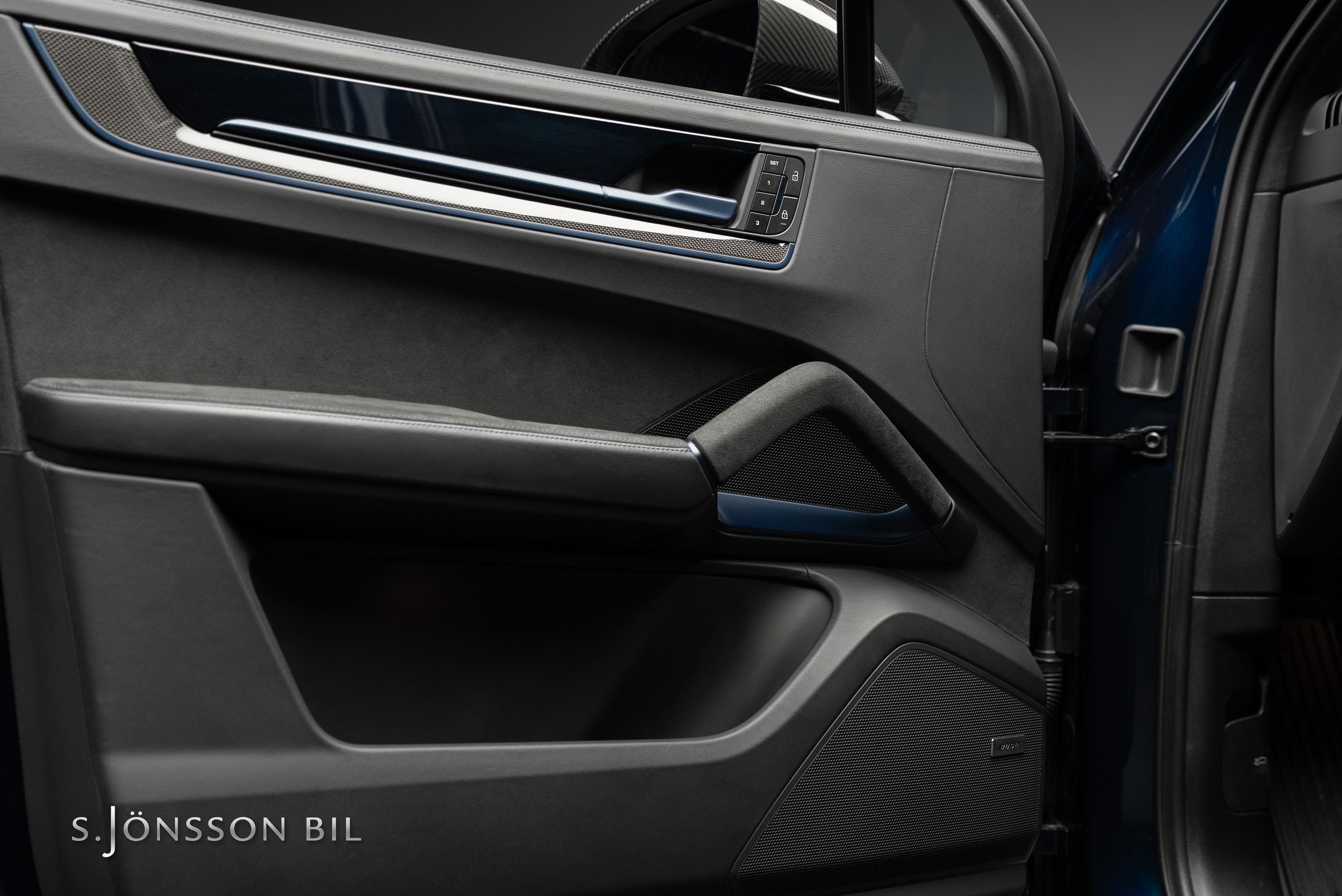 Detta exemplar är lackerat i Deep Sea Blue metallic kombinerat med exklusiv interiör i läder och Race-Tex. Deep Sea Blue kulören finner vi även på interiörpanelerna och 22" fälgarna.