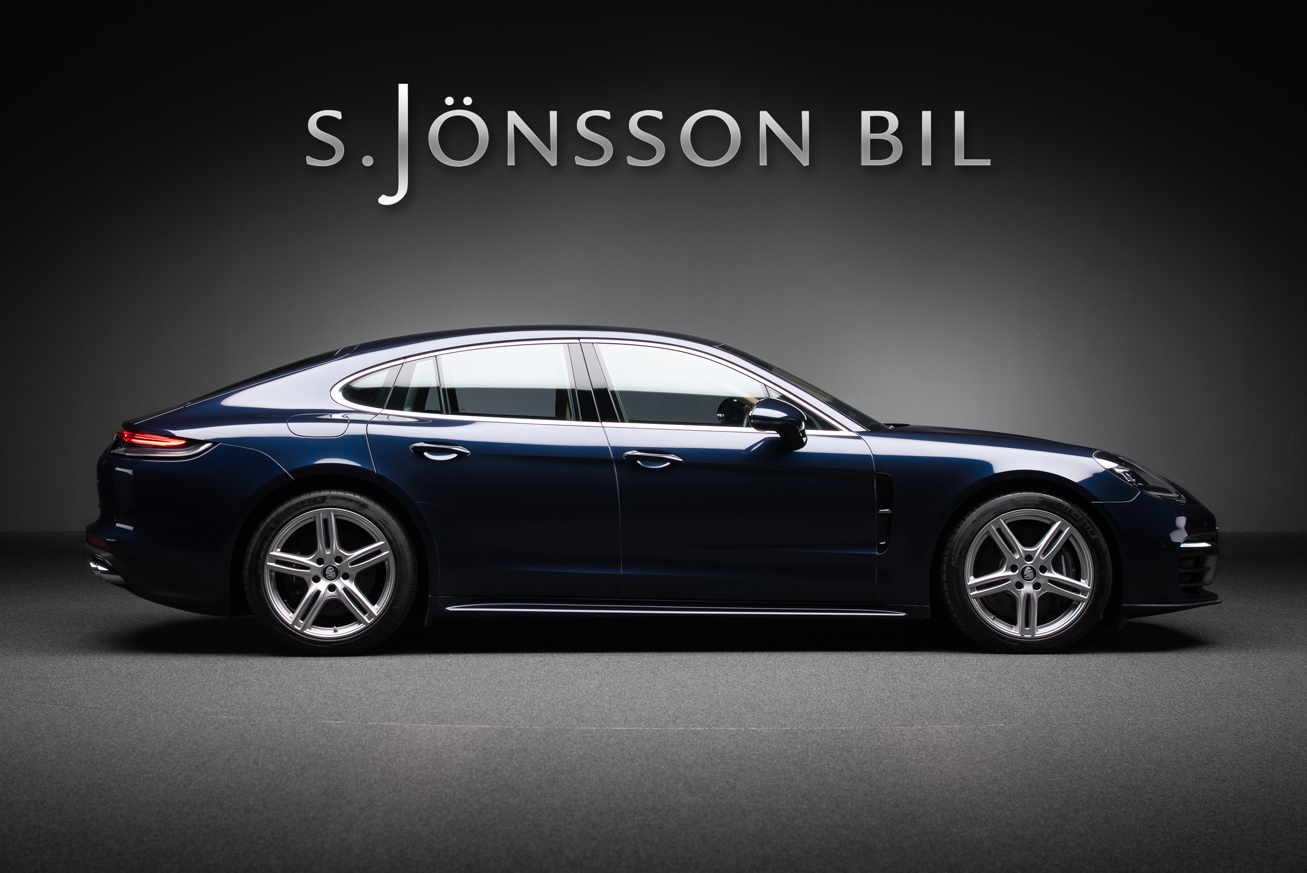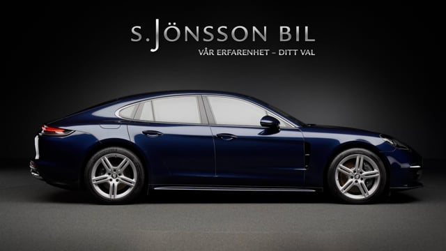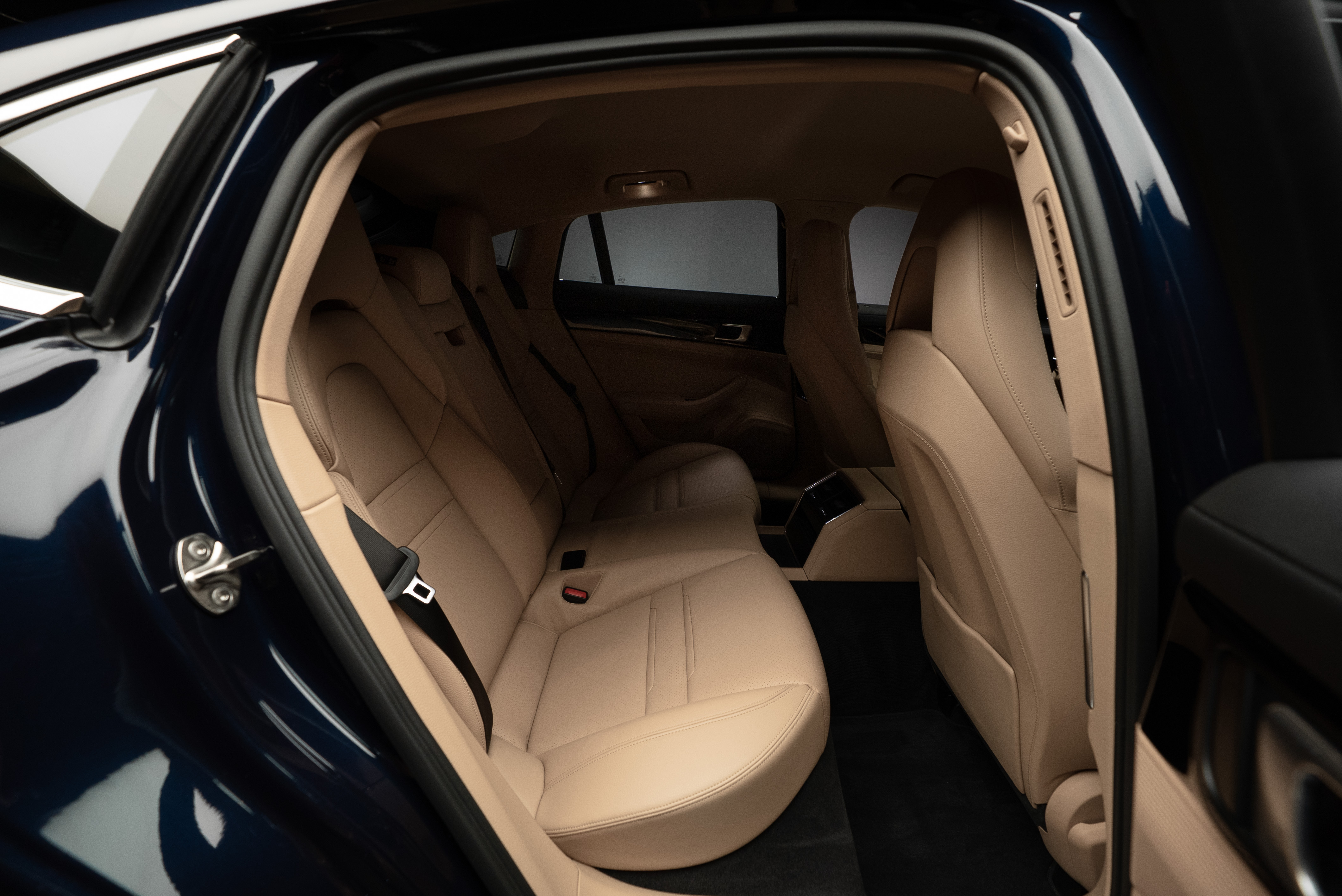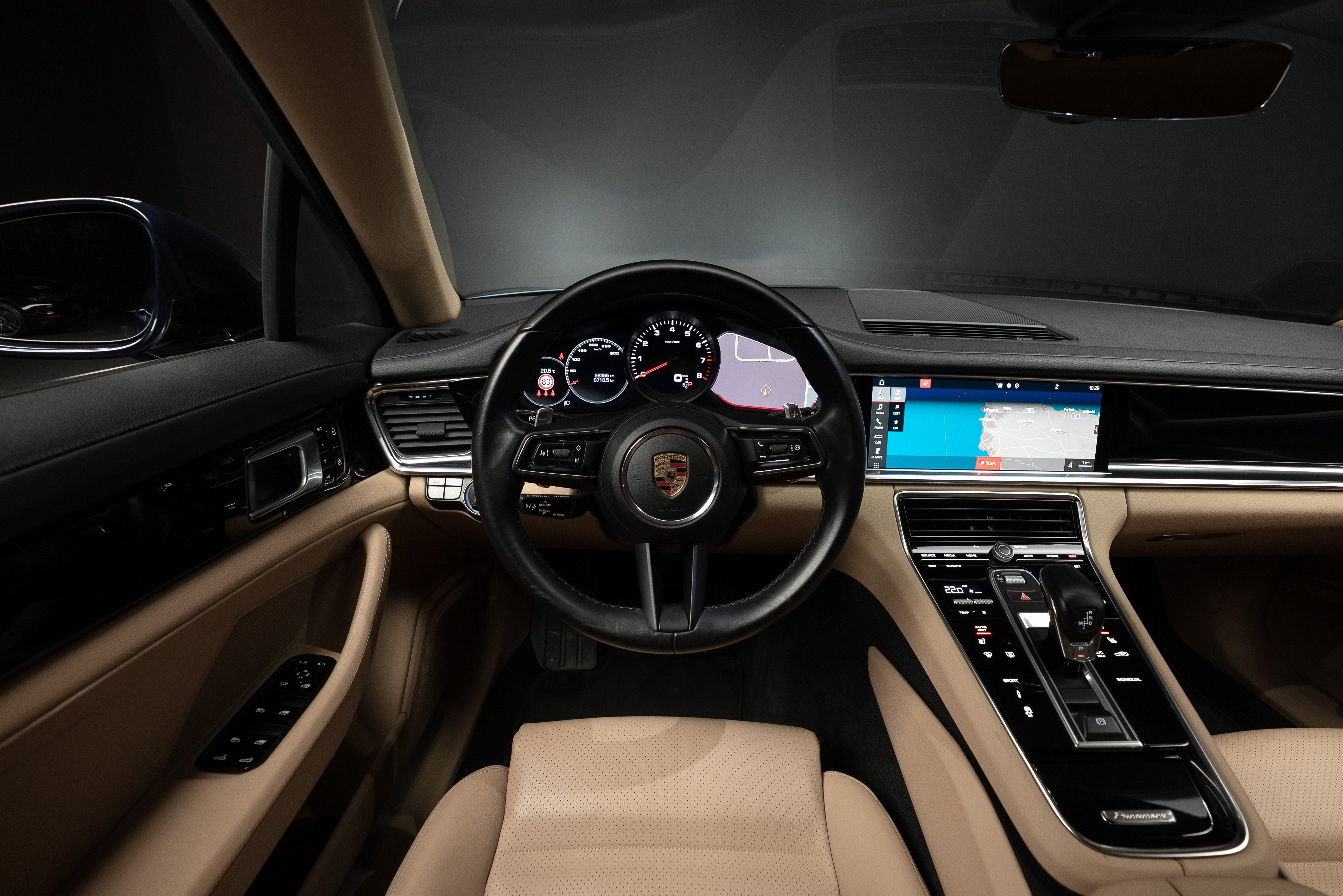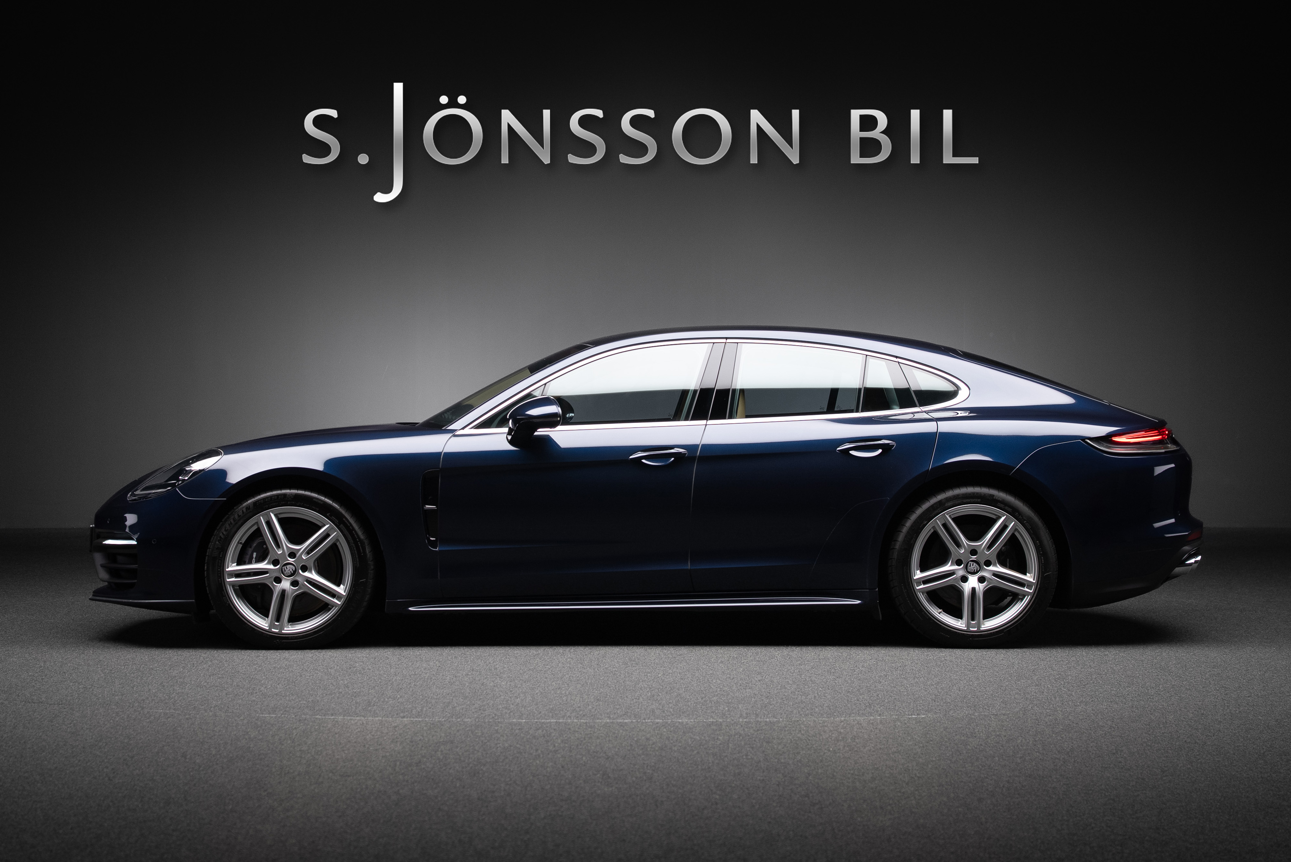 Porsche Panamera 4 lackerad i den eleganta kulören Night Blue Metallic kombinerat med beige läderinteriör.