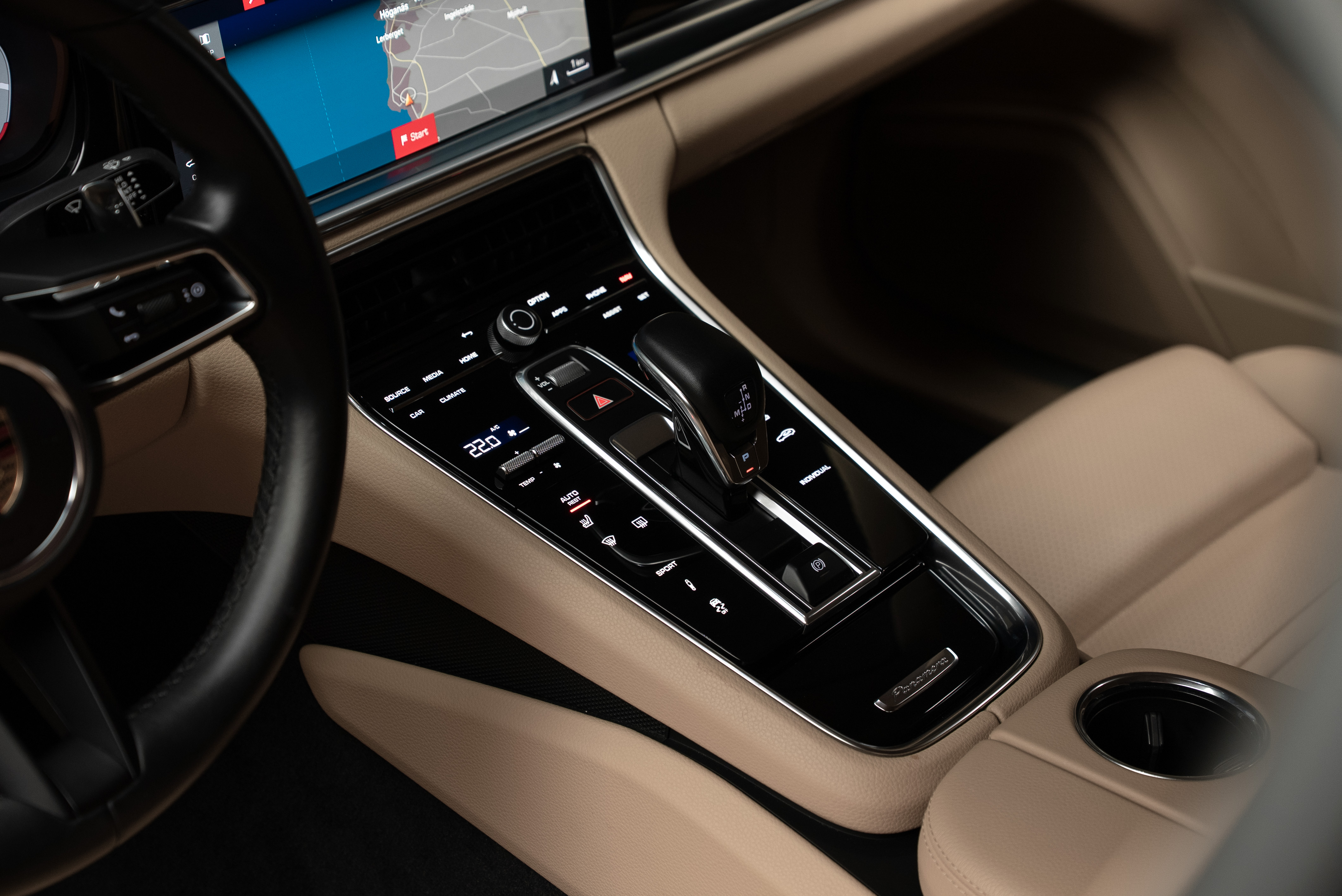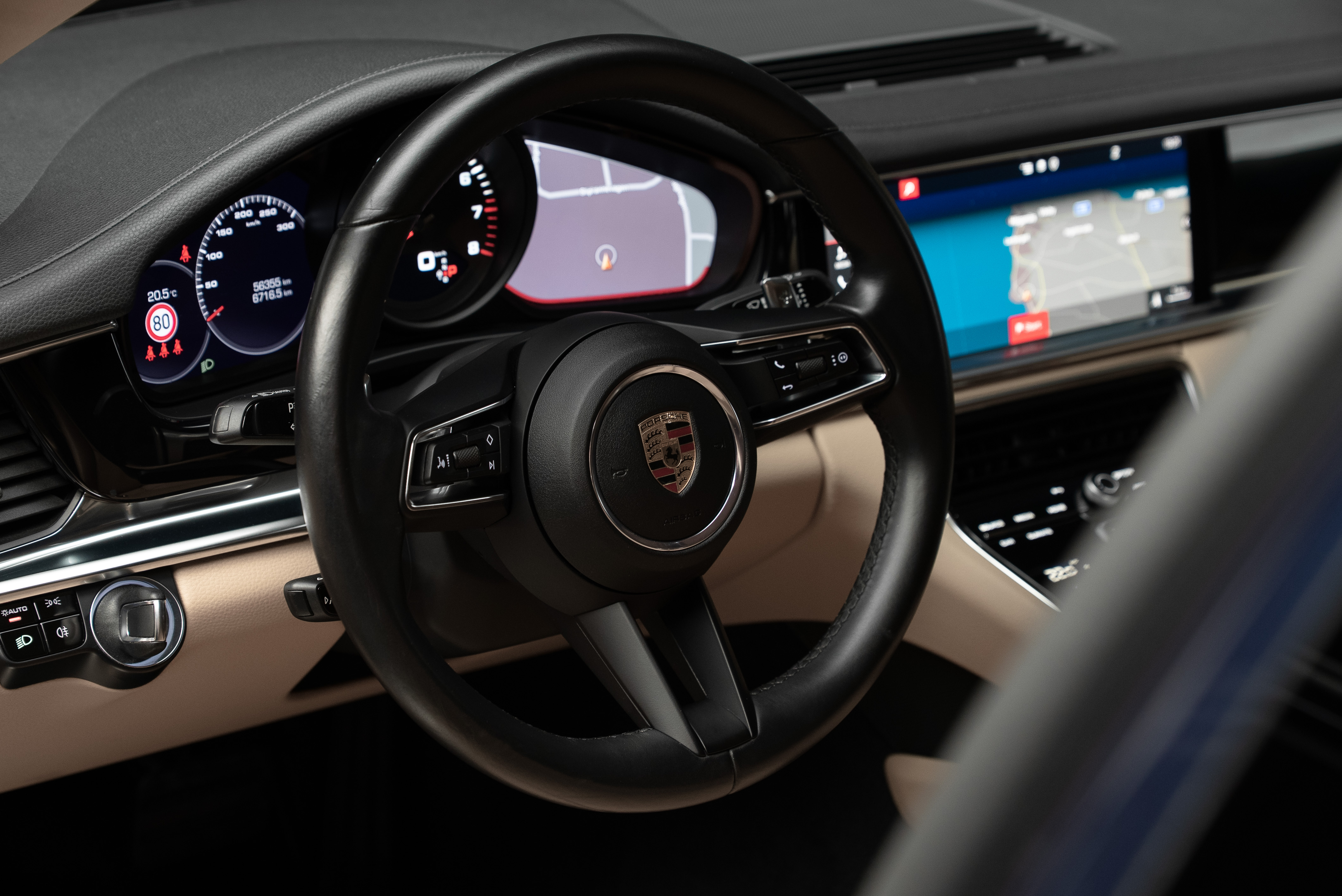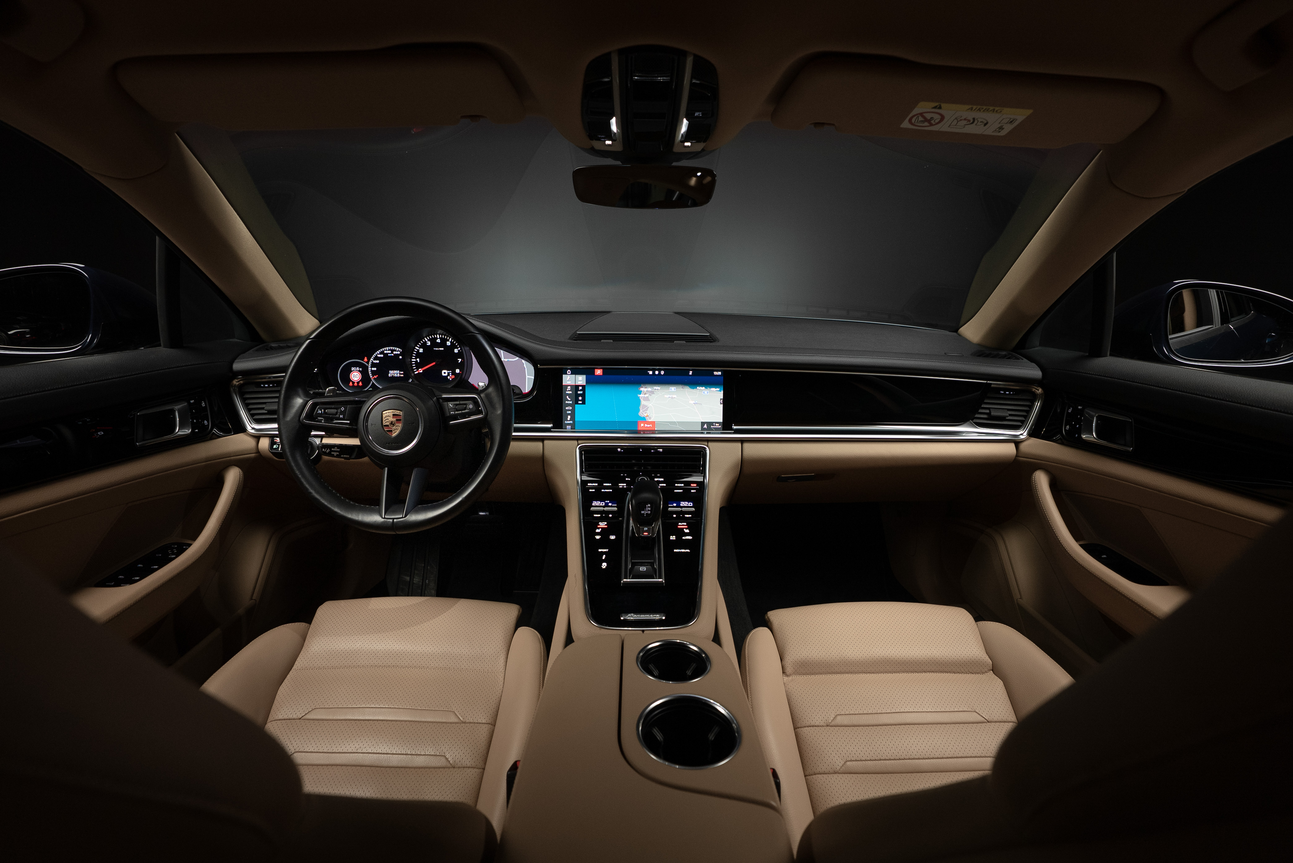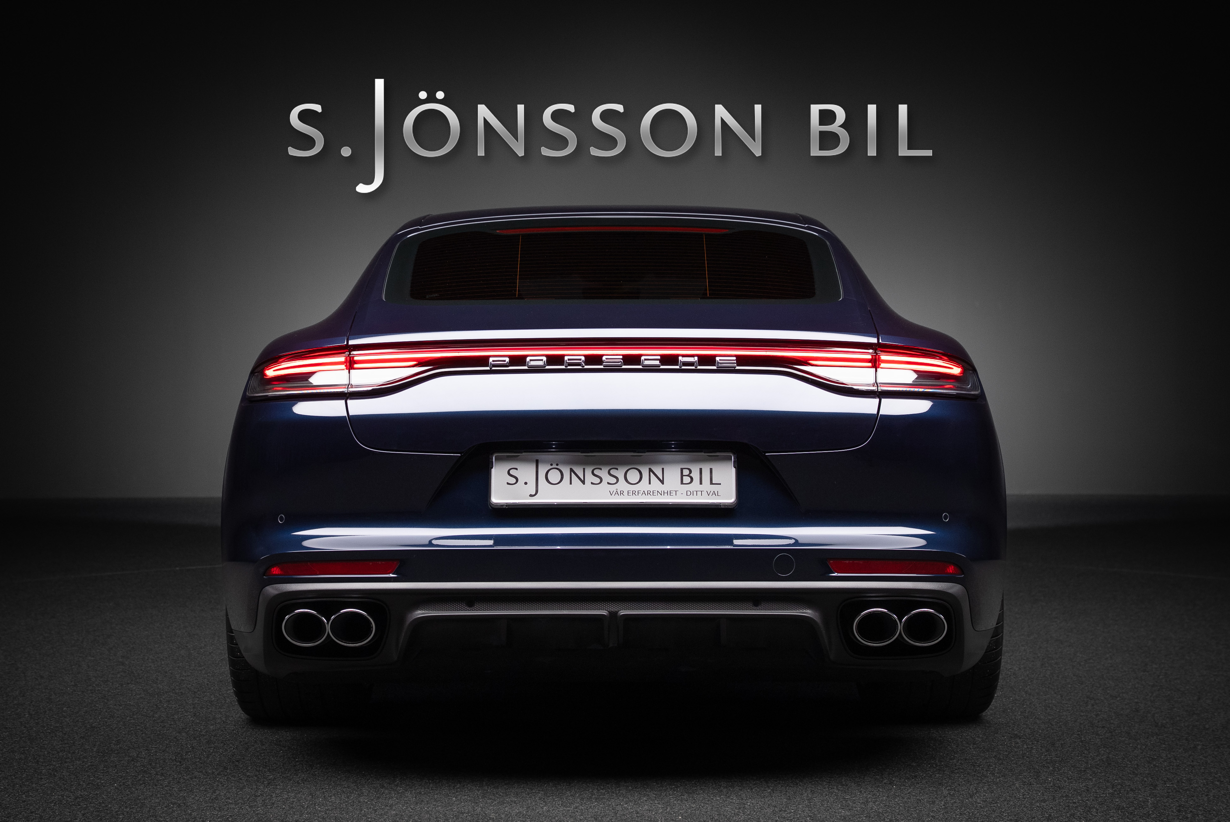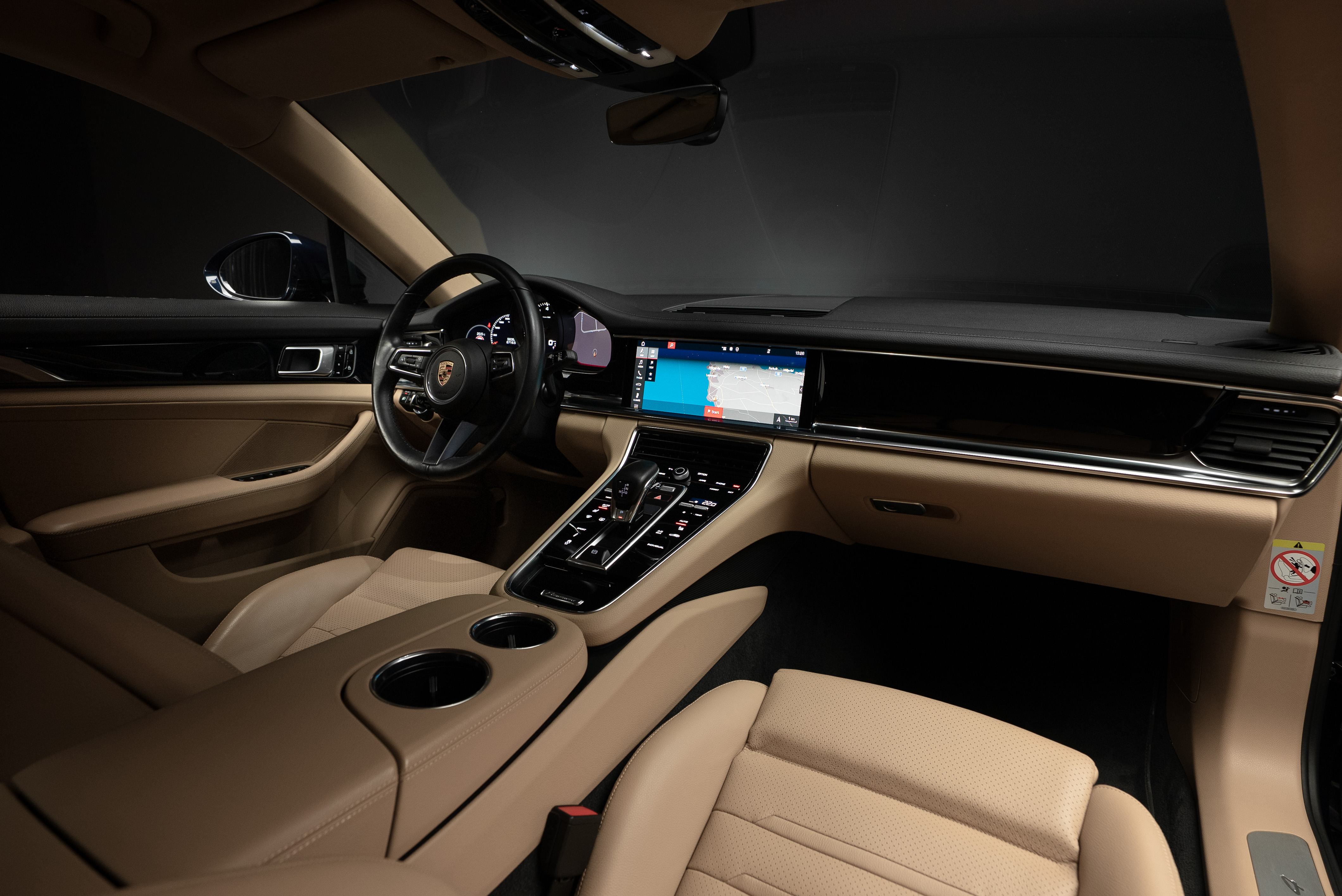 Porsche Panamera 4 lackerad i den eleganta kulören Night Blue Metallic kombinerat med beige läderinteriör.