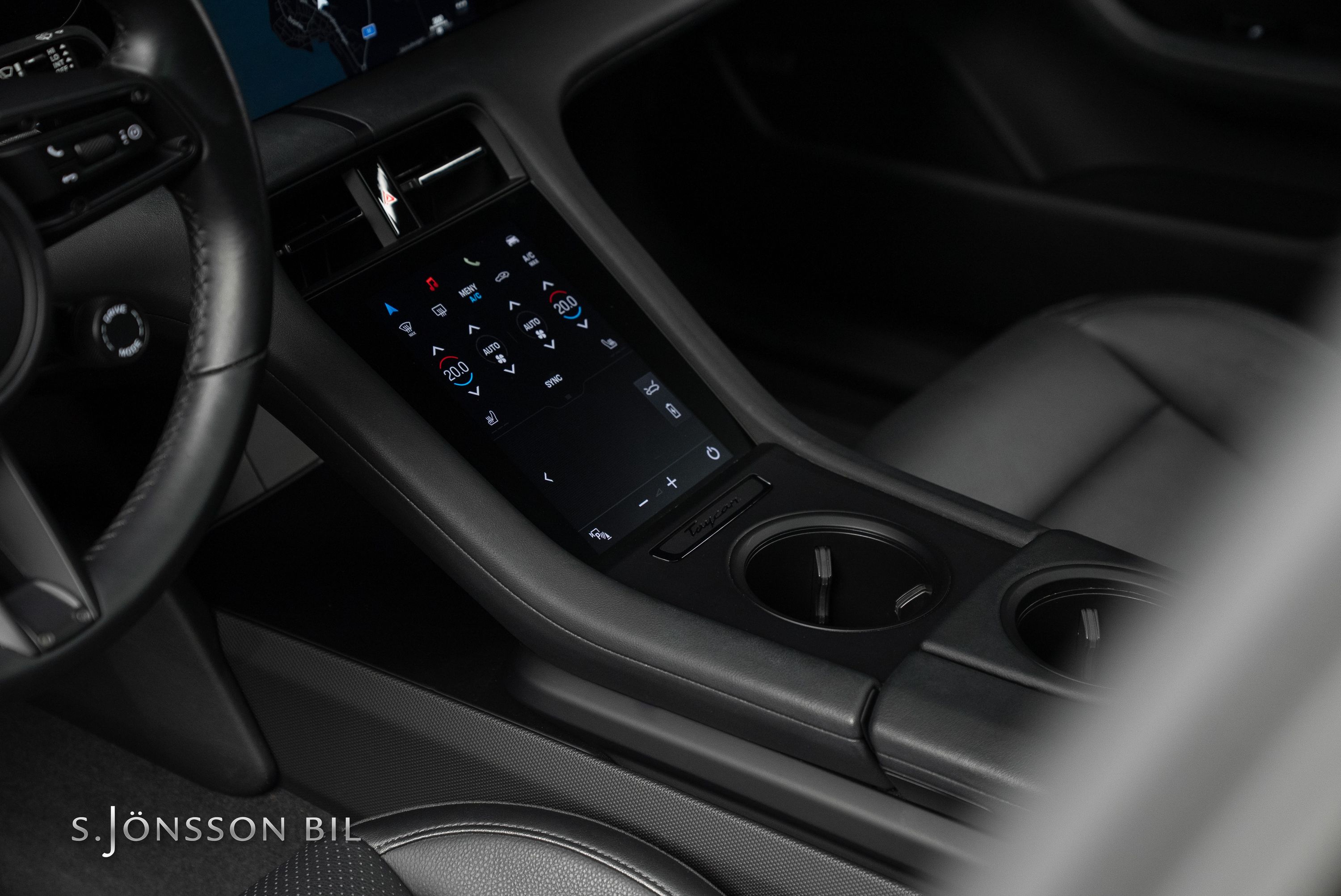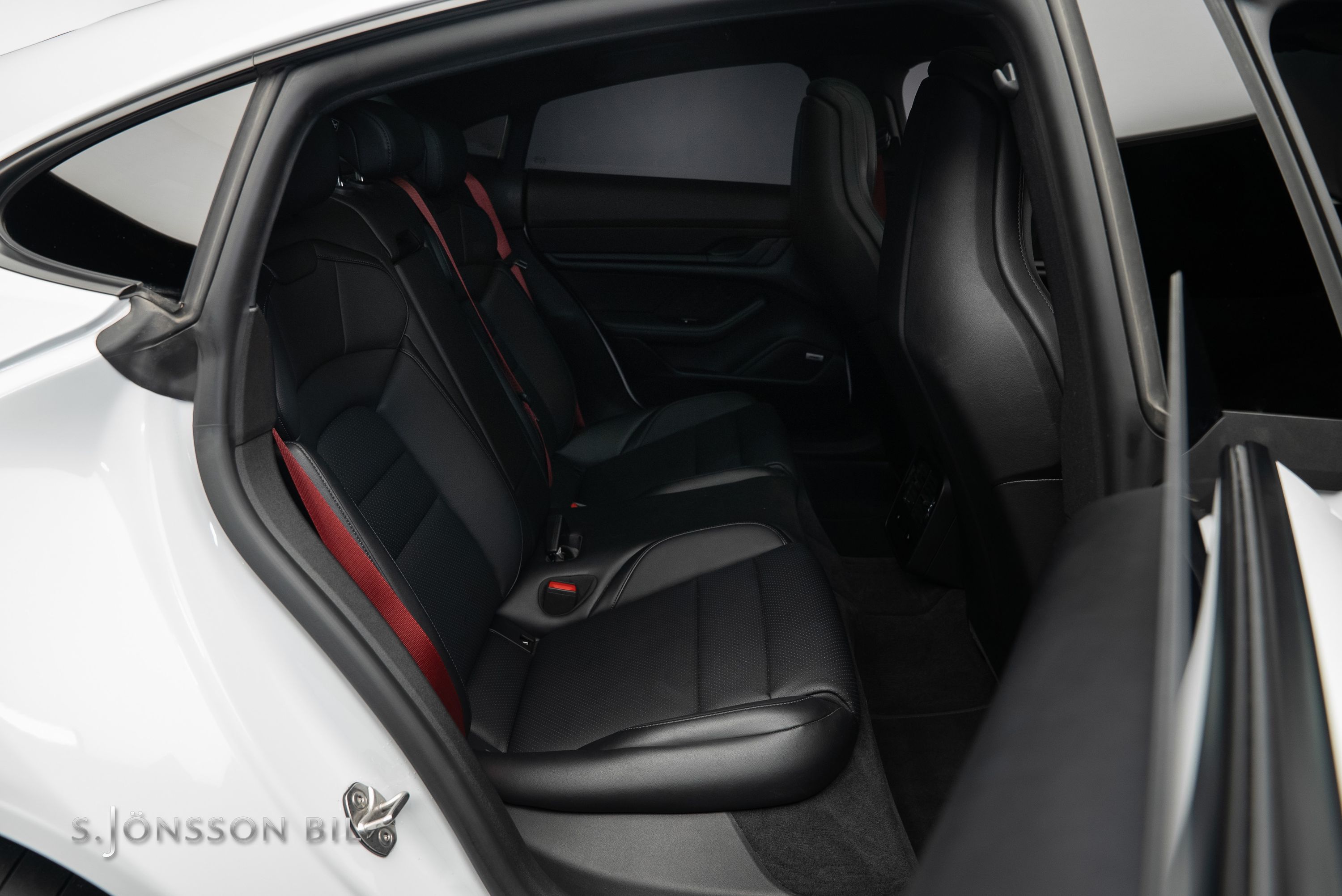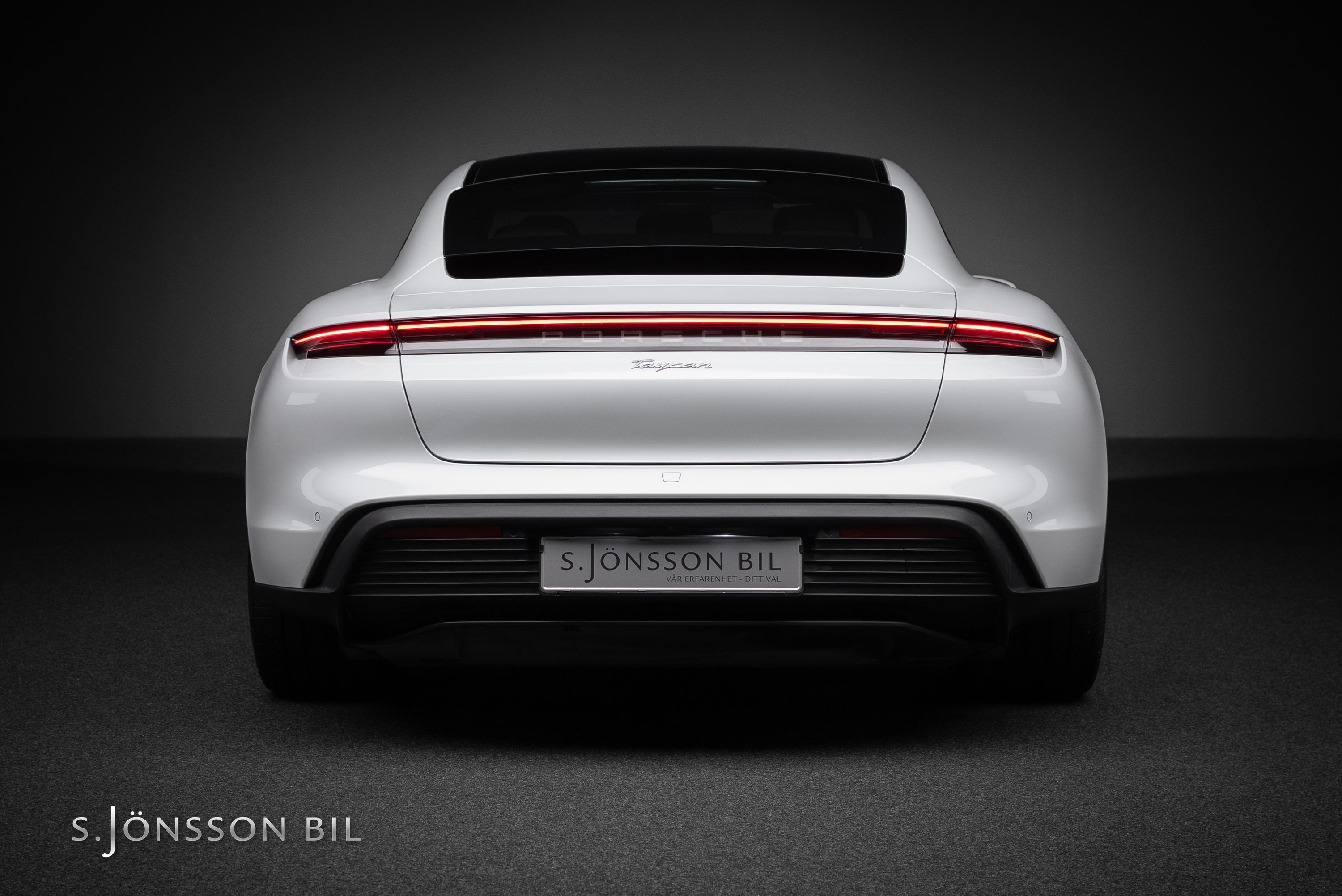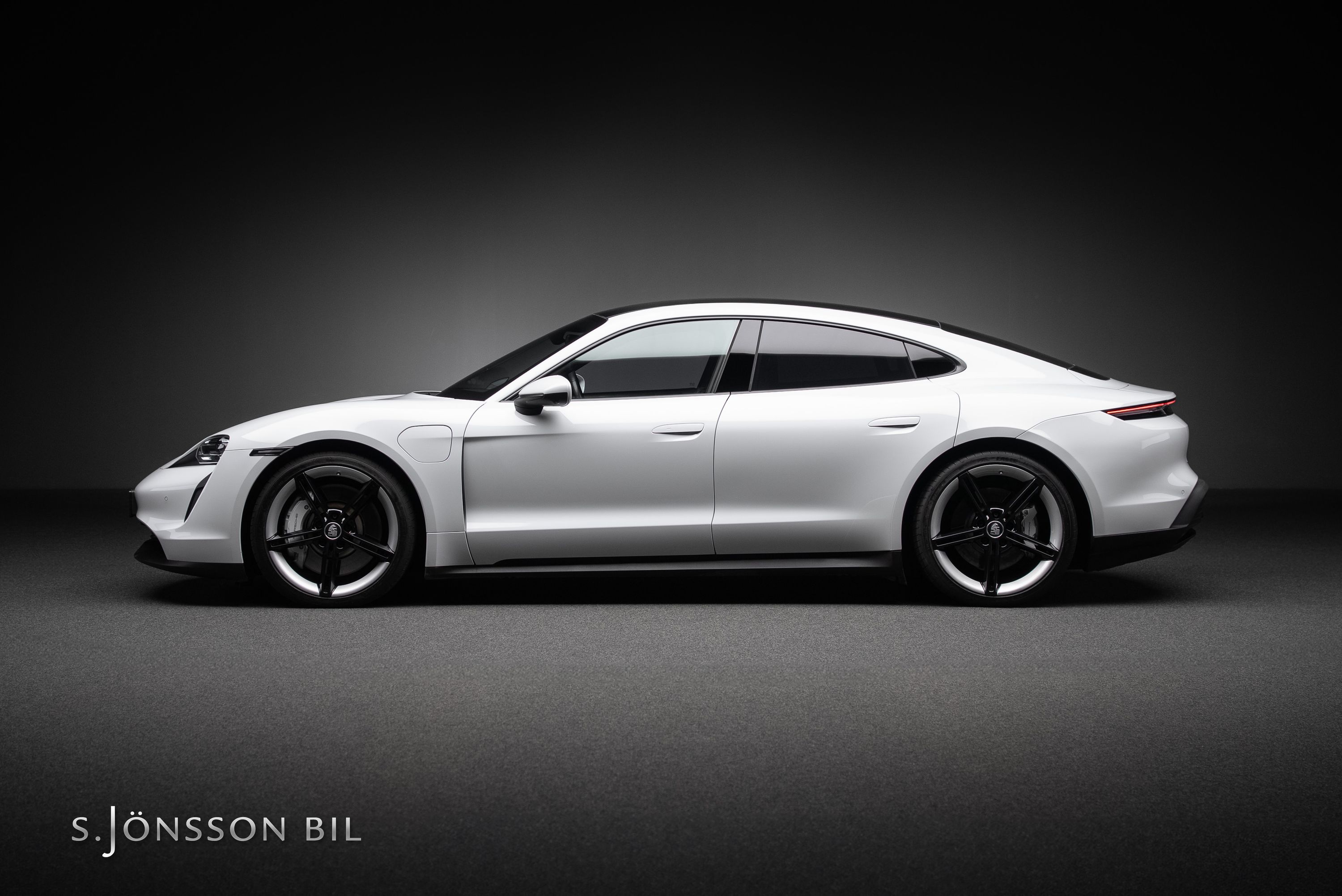 Porsche Taycan leasebar lackerad i White metallic med svart läderinteriör. En bil som kombinerar imponerande prestanda med klassisk Porsche-körkänsla. Den sportiga designen och den låga tyngdpunkten ger en stabil körupplevelse.
