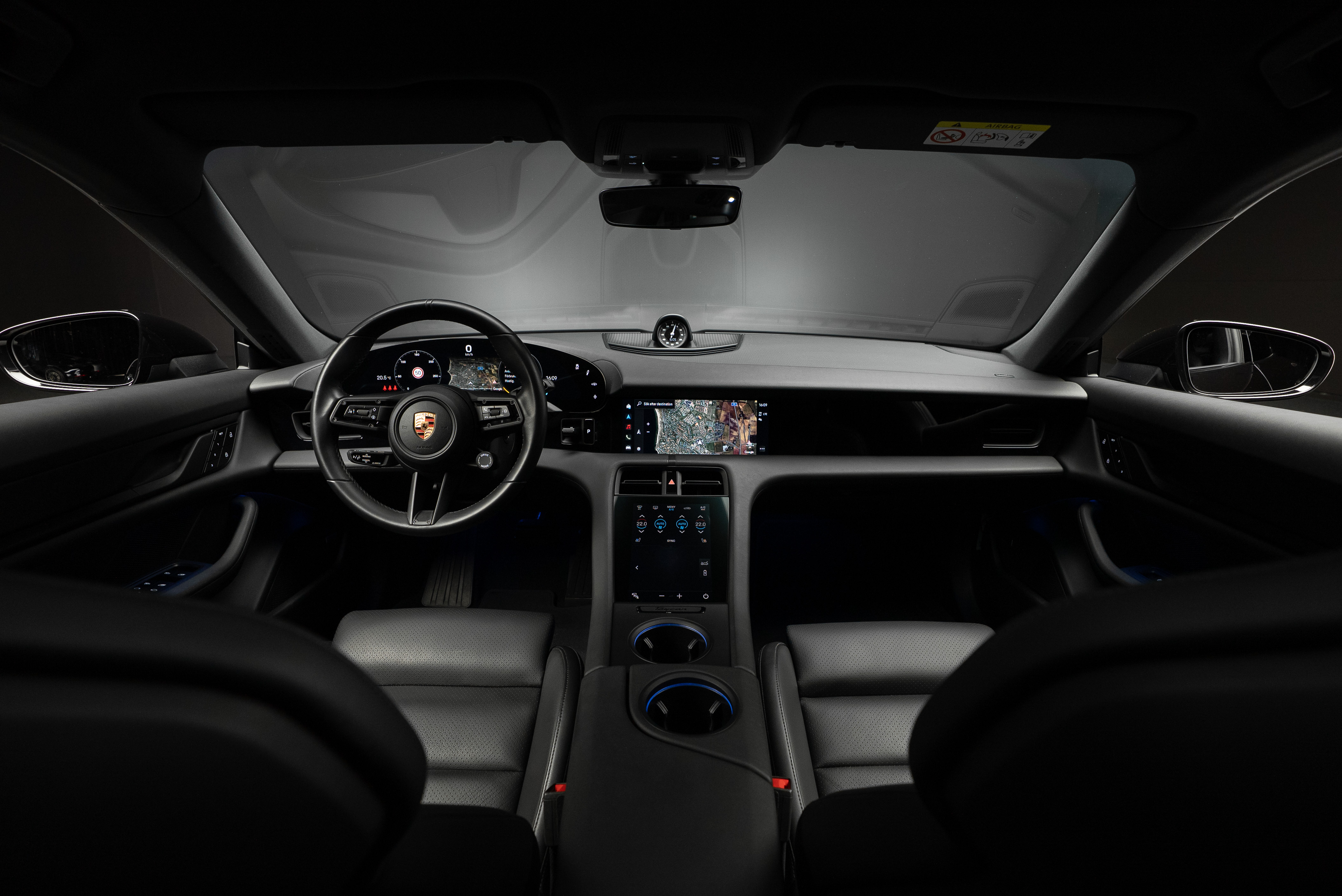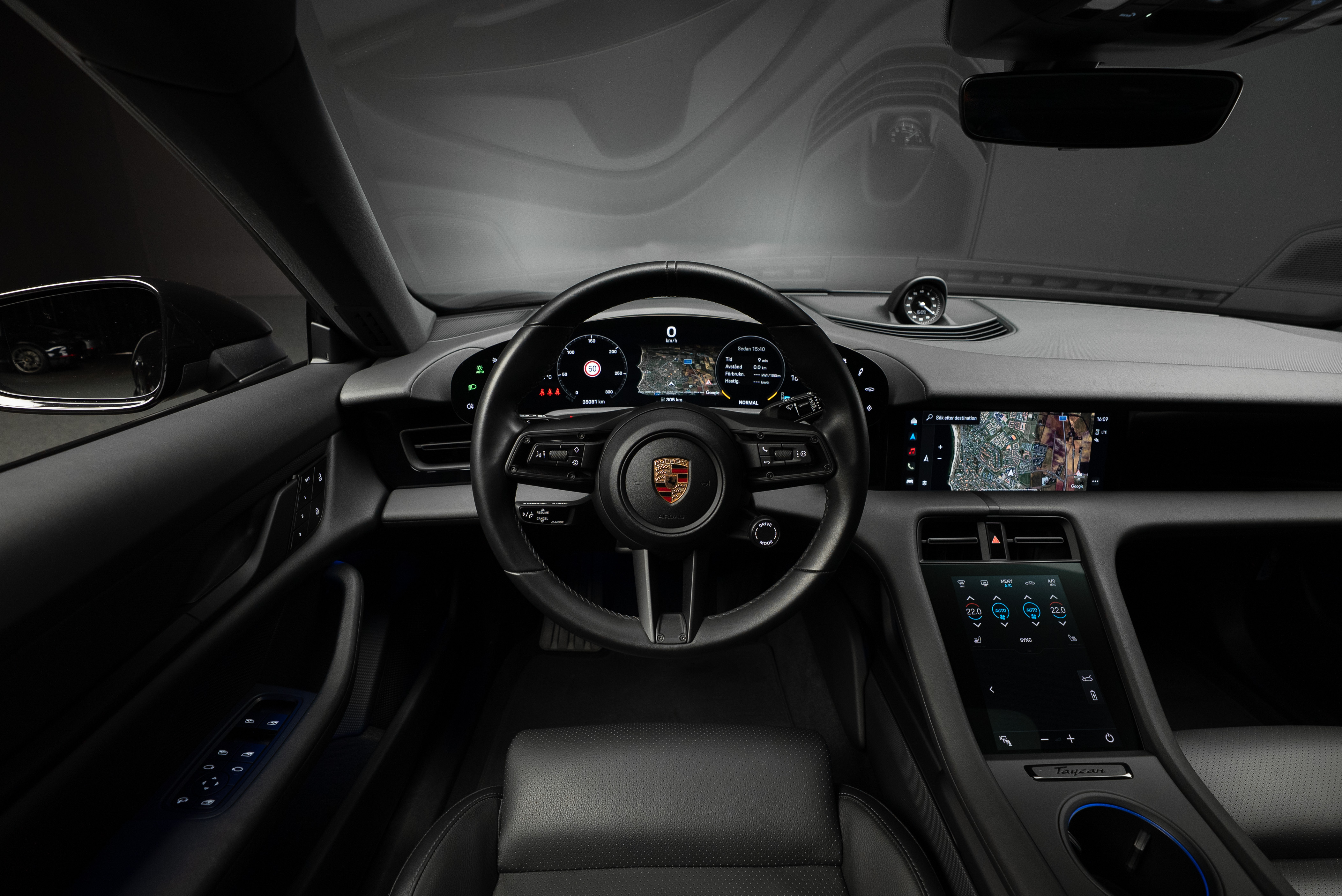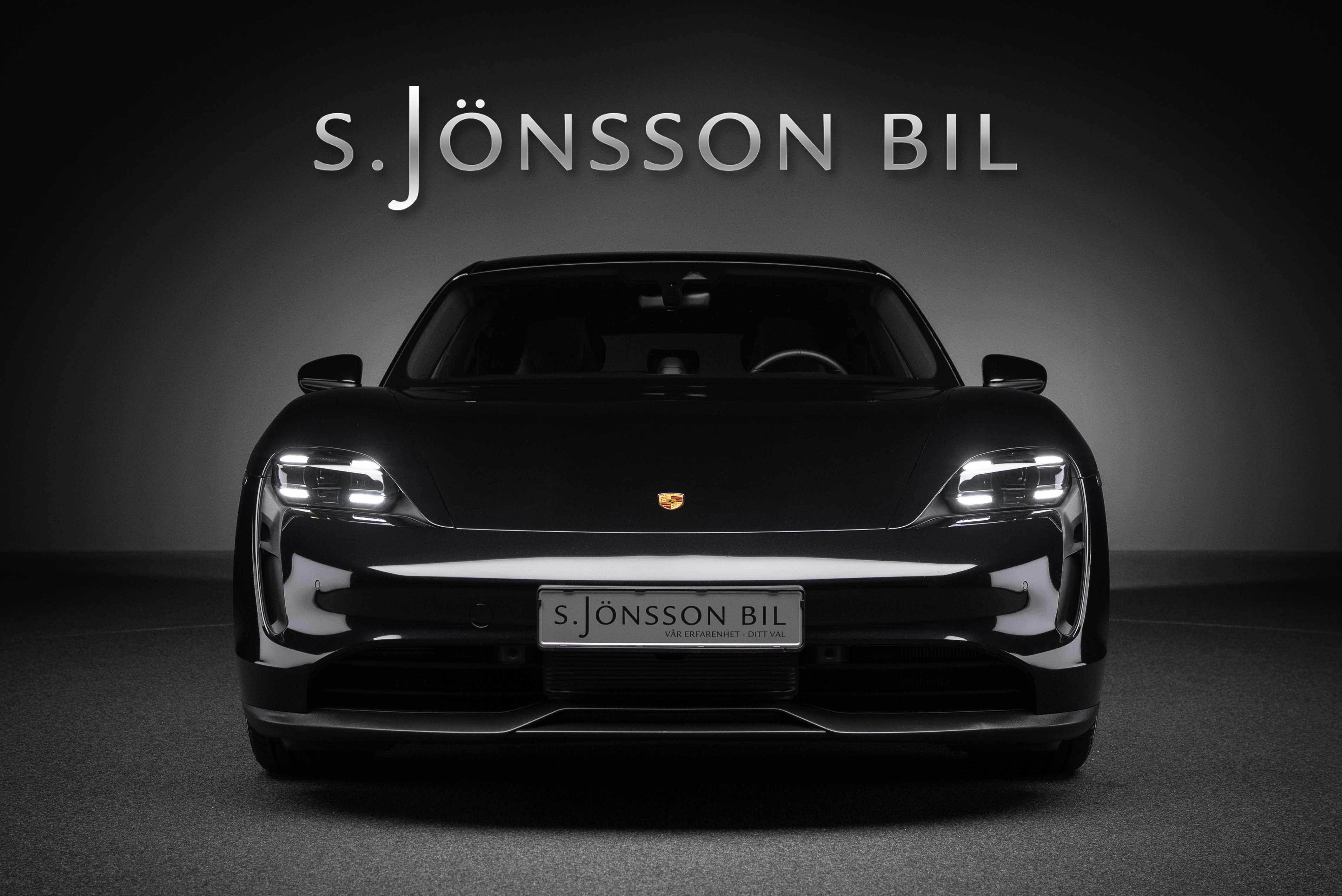 Porsche Taycan Lackerad i den klassiska Jet Black Metallic med svart interiör.