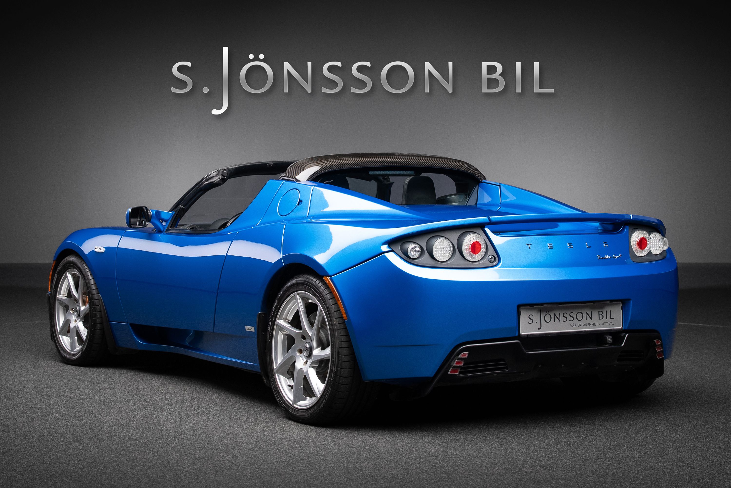 Mycket ovanlig Tesla Roadster av första generationen i faceliftutförande.