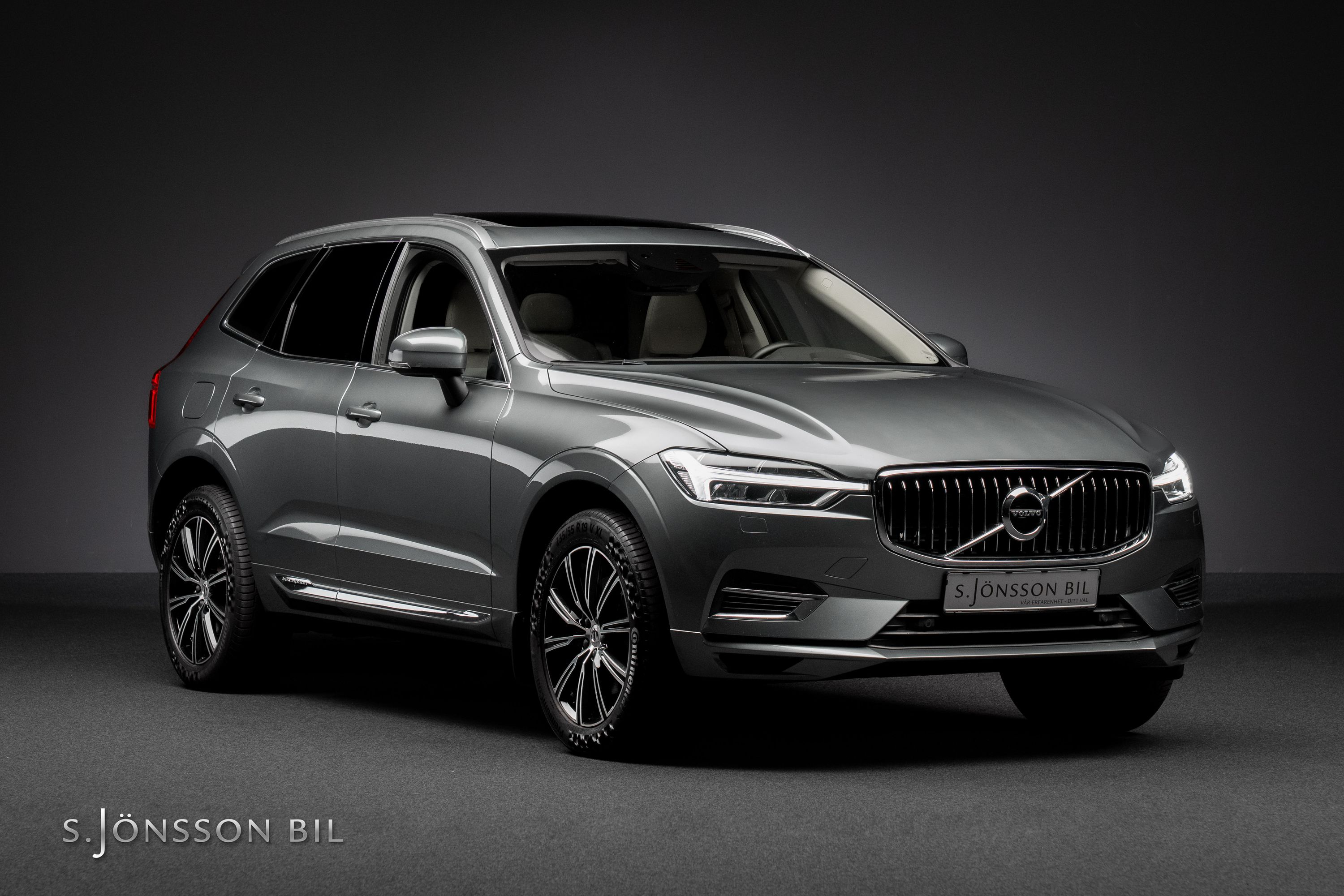 Välvårdad Volvo XC60 T8 TE Inscription, lackerad I Osmium grå metallic med ljust läder och dekorinlägg i drift wood.